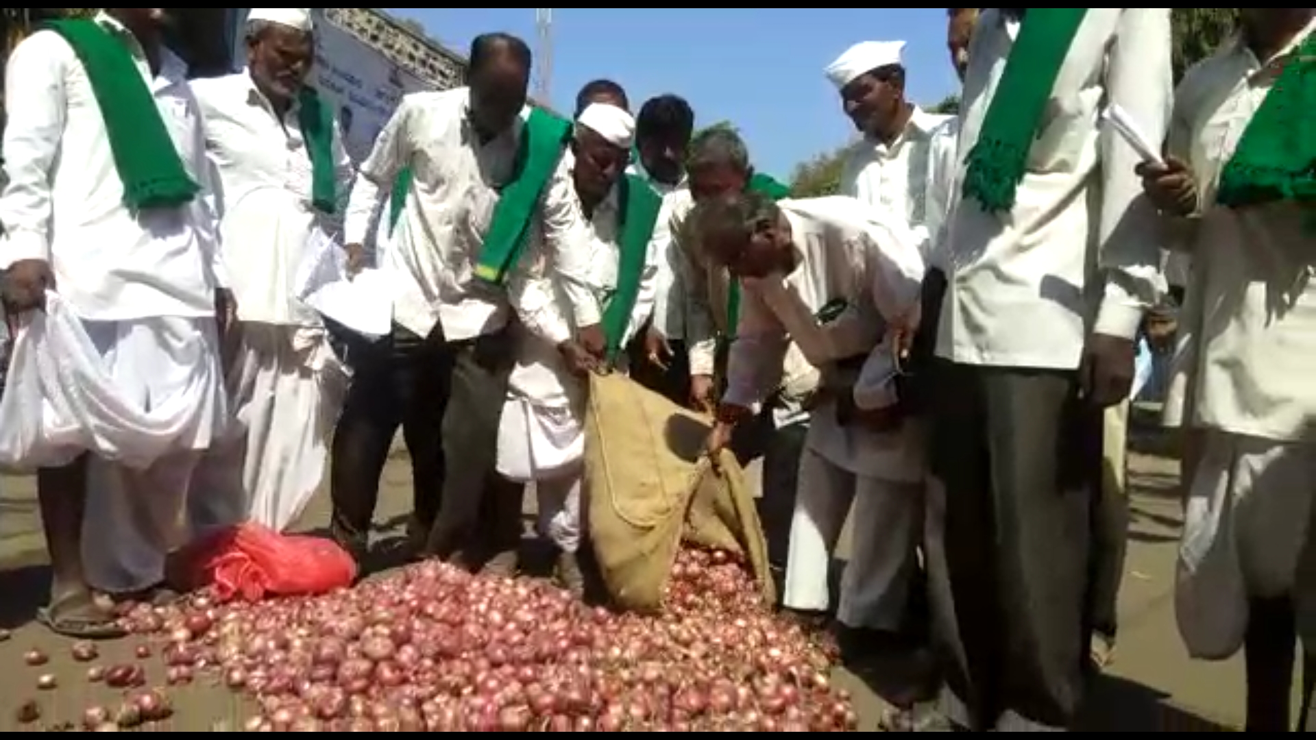 ಬೆಲೆ ಕುಸಿತದಿಂದ ಕಂಗಾಲಾಗಿರುವ ಬೆಳೆಗಾರರು ಈರುಳ್ಳಿಯನ್ನು ಜಿಲ್ಲಾಧಿಕಾರಿಗಳ ಕಚೇರಿ ಎದುರು ಸುರಿದು ಸರ್ಕಾರದ ವಿರುದ್ಧ ಆಕ್ರೋಶ ವ್ಯಕ್ತಪಡಿಸುತ್ತಿದ್ದಾರೆ.