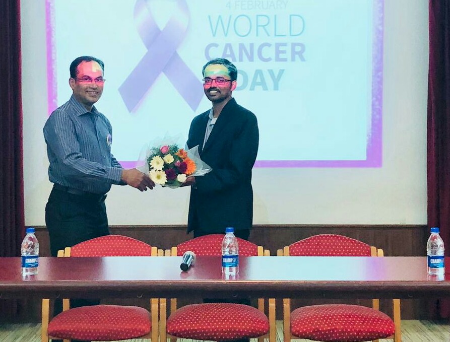ಮಂಗಳೂರು ಕೊಡಿಯಾಲ್ ಬೈಲಿನಲ್ಲಿರುವ ಯೇನಪೋಯ ಸ್ಪೆಷಾಲಿಟಿ ಆಸ್ಪತ್ರೆಯ ಕಾನ್ಪರೆನ್ಸ್ ಹಾಲ್ ನಲ್ಲಿ ವಿಶ್ವ ಕ್ಯಾನ್ಸರ್ ದಿನಾಚರಣೆಯ ಅಂಗವಾಗಿ ಸೋಮವಾರ ಸಂಜೆ ನಡೆದ "ಶೀಘ್ರ ಕ್ಯಾನ್ಸರ್ ಪತ್ತೆ ಹಚ್ಚುವುದು ಹೇಗೆ " ಎನ್ನುವ ವಿಷಯದ ಕುರಿತು ಉಪನ್ಯಾಸ ನೀಡಿದರು.