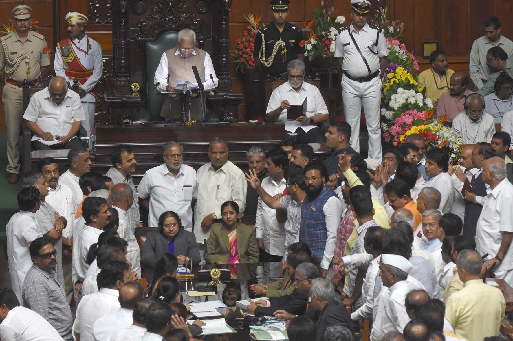 ಬುಧವಾರ ವಿಧಾನಸೌಧದಲ್ಲಿ ರಾಜ್ಯಪಾಲರ ಭಾಷಣದ ಬಳಿಕ ಮಾಧ್ಯಮ ಪ್ರತಿನಿಧಿಗಳ ಜತೆ ಮಾತನಾಡಿದ ಅವರು, ಮುಖ್ಯಮಂತ್ರಿ ಕುಮಾರಸ್ವಾಮಿಗೆ ಅವರ ಶಾಸಕರ ಮೇಲೆ ವಿಶ್ವಾಸವಿಲ್ಲ. ಹೈಕಮಾಂಡ್ ಮೇಲೆ ಒತ್ತಡ ತಂದು ಶಾಸಕರನ್ನು ಸದನಕ್ಕೆ ಬರುವಂತೆ ಮಾಡುತ್ತಿದ್ದಾರೆ ಎಂದು ಟೀಕಿಸಿದರು.