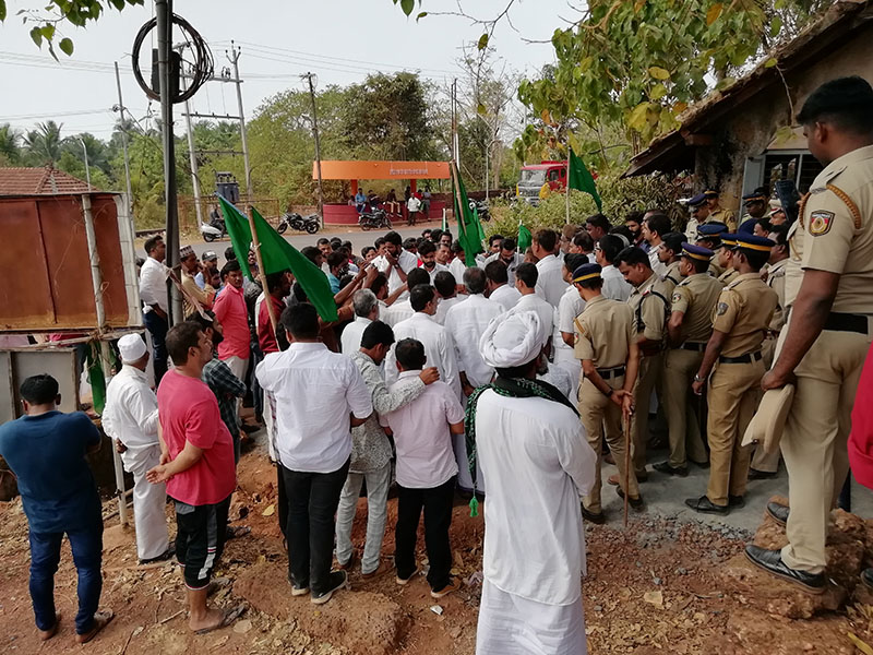 ಮಂಜೇಶ್ವರ ನೋಂದಾವಣಾ ಕಚೇರಿ ಪರಿಸರದಿಂದ ಆರಂಭಗೊಂಡ ಪ್ರತಿಭಟನಾ ಮೆರವಣಿಗೆಯನ್ನು ಮಂಜೇಶ್ವರ ಠಾಣಾ ಮುಂಭಾಗದಲ್ಲಿ ಪೊಲೀಸರು ತಡೆದರು.