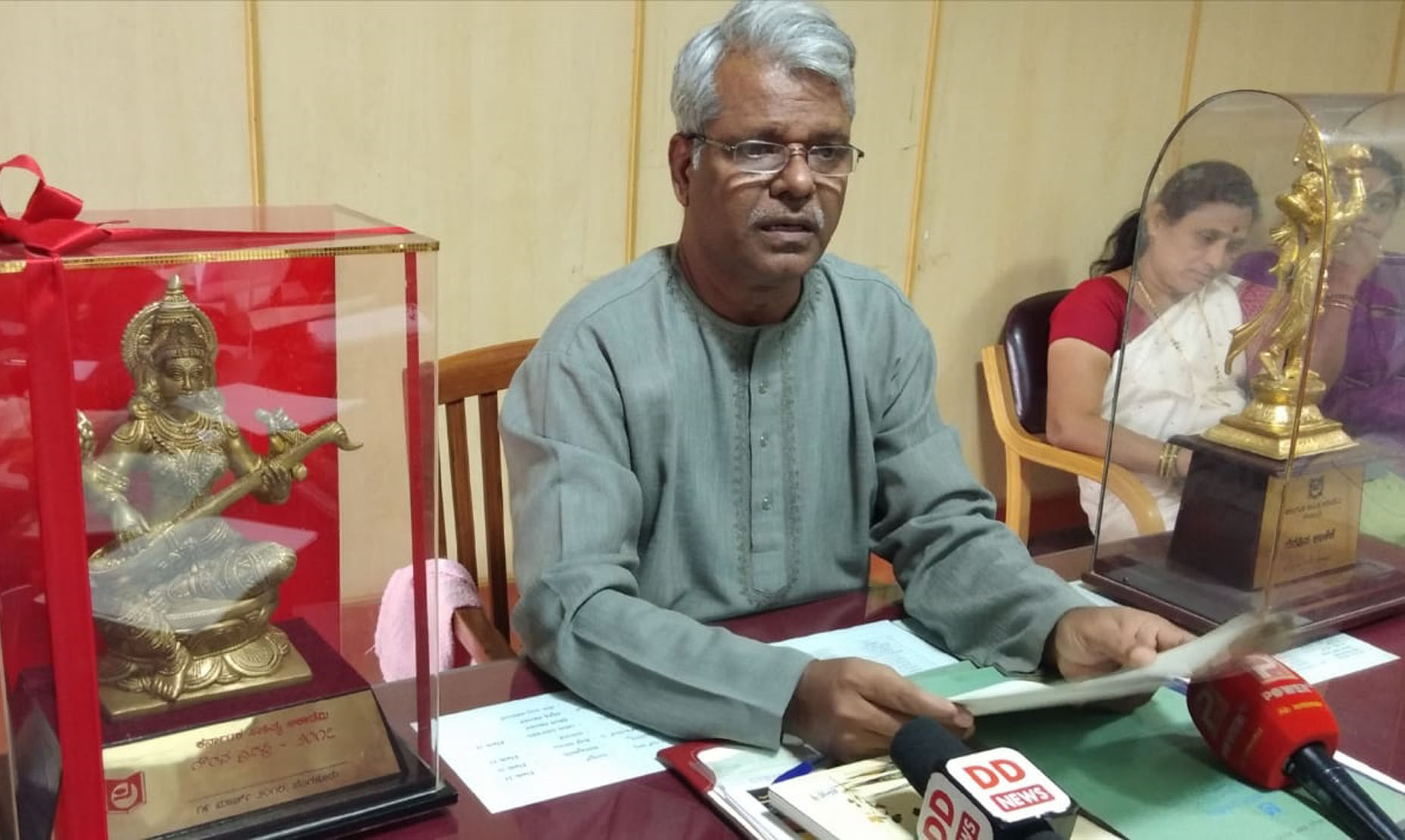 ಗುರುವಾರ ನಗರದ ಕನ್ನಡ ಭವನದಲ್ಲಿ ಆಯೋಜಿಸಿದ್ದ ಸುದ್ದಿಗೋಷ್ಠಿಯಲ್ಲಿ ಅಕಾಡೆಮಿ ಅಧ್ಯಕ್ಷ ಡಾ. ಅರವಿಂದ ಮಾಲಗತ್ತಿ ಪ್ರಶಸ್ತಿಗೆ ಆಯ್ಕೆಯಾದವರ ಪಟ್ಟಿಯನ್ನು ಬಿಡುಗಡೆ ಮಾಡಿ, ವಿವರ ನೀಡಿದರು.