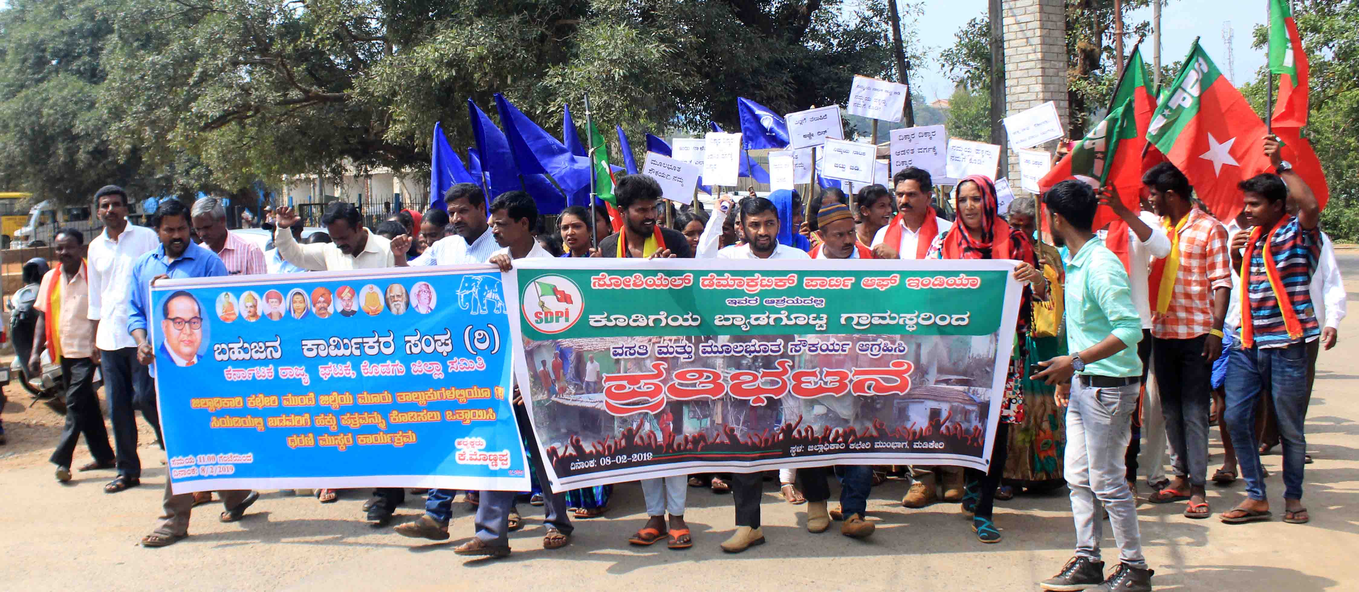 ನಿವೇಶನ, ಸ್ಮಶಾನ ಜಾಗಕ್ಕಾಗಿ ಆಗ್ರಹ: ಮಡಿಕೇರಿಯಲ್ಲಿ ಬಹುಜನ ಸಂಘ, ಎಸ್ಡಿಪಿಐ ಪ್ರತಿಭಟನೆ