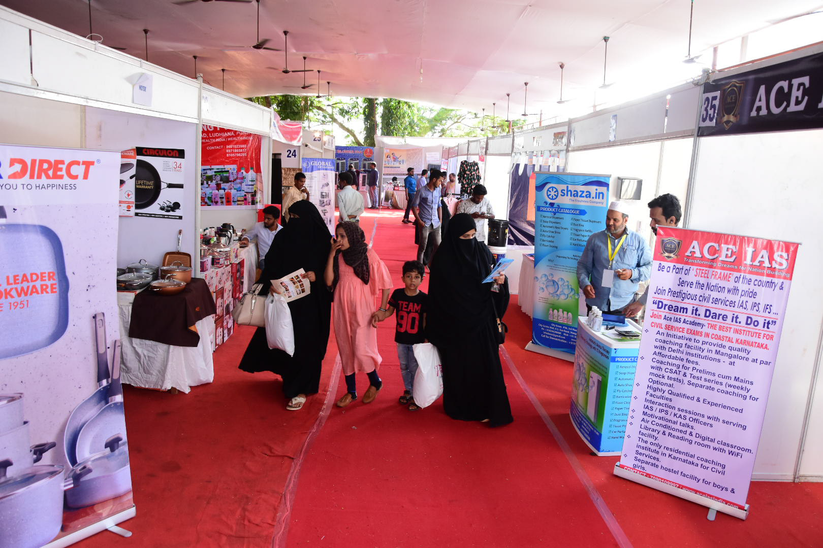 ಮಹಿಳೆಯರ ಅಲಂಕಾರಿಕ ಸಾಮಗ್ರಿಗಳು, ಬ್ಯಾಗ್, ಚಪ್ಪಲಿ, ಶೂ, ಇಲೆಕ್ಟ್ರಾನಿಕ್ಸ್ ಸಾಮಗ್ರಿಗಳು, ಬಟ್ಟೆಬರೆ, ಮದುವೆಯ ಆಮಂತ್ರಣ ಪತ್ರದ ಮಾದರಿ, ಹಜ್ ಮತ್ತು ಉಮ್ರಾ ಟೂರ್ಸ್, ಪೈಂಟಿಂಗ್ಸ್, ಸೈಕಲ್ ಮಾರಾಟ ಮತ್ತು ದುರಸ್ತಿ ಮಳಿಗೆ, ಡ್ರೈಫ್ರೂಟ್ಸ್, ಆರ್ಯುವೇದಿಕ್, ಆಹಾರ ಸಾಮಗ್ರಿಗಳ ಅಂಗಡಿ, ಮೊಬೈಲ್ ಮತ್ತು ಚಿನ್ನಾಭರಣದ ಮಳಿಗೆಯತ್ತ ಗ್ರಾಹಕರು ಸುಳಿದಾಡುತ್ತಿದ್ದರು. ಹಲವರು ಸಾಮಗ್ರಿಗಳನ್ನು ಖರೀದಿಸುತ್ತಿದ್ದರೆ, ಇನ್ನು ಕೆಲವರು ಮಾಹಿತಿ ಪಡೆದುಕೊಳ್ಳುತ್ತಿದ್ದರು. ಮಳಿಗೆಗಳ ಉಸ್ತುವಾರಿ ವಹಿಸಿಕೊಂಡವರು ತಮ್ಮ ಮಳಿಗೆಯತ್ತ ಸುಳಿದಾಡುವ ಗ್ರಾಹಕರಿಗೆ ಪೂರಕ ಮಾಹಿತಿ ನೀಡುವುದರೊಂದಿಗೆ ಹೆಸರು, ಊರು, ಸಂಪರ್ಕ ಸಂಖ್ಯೆ ಇತ್ಯಾದಿಯನ್ನು ವಿವರ ದಾಖಲಿಸಿಕೊಳ್ಳುತ್ತಿದ್ದರು. ಹಲವು ವ್ಯಾಪಾರಿಗಳು ಕೂಡ ಮಳಿಗೆಯತ್ತ ತೆರಳಿ ತಮಗೆ ಬೇಕಾದ ಸಾಮಗ್ರಿಗಳ ಬುಕ್ಕಿಂಗ್ ಆರ್ಡರ್ ನೀಡುತ್ತಿದ್ದುದು ಕಂಡು ಬಂತು.