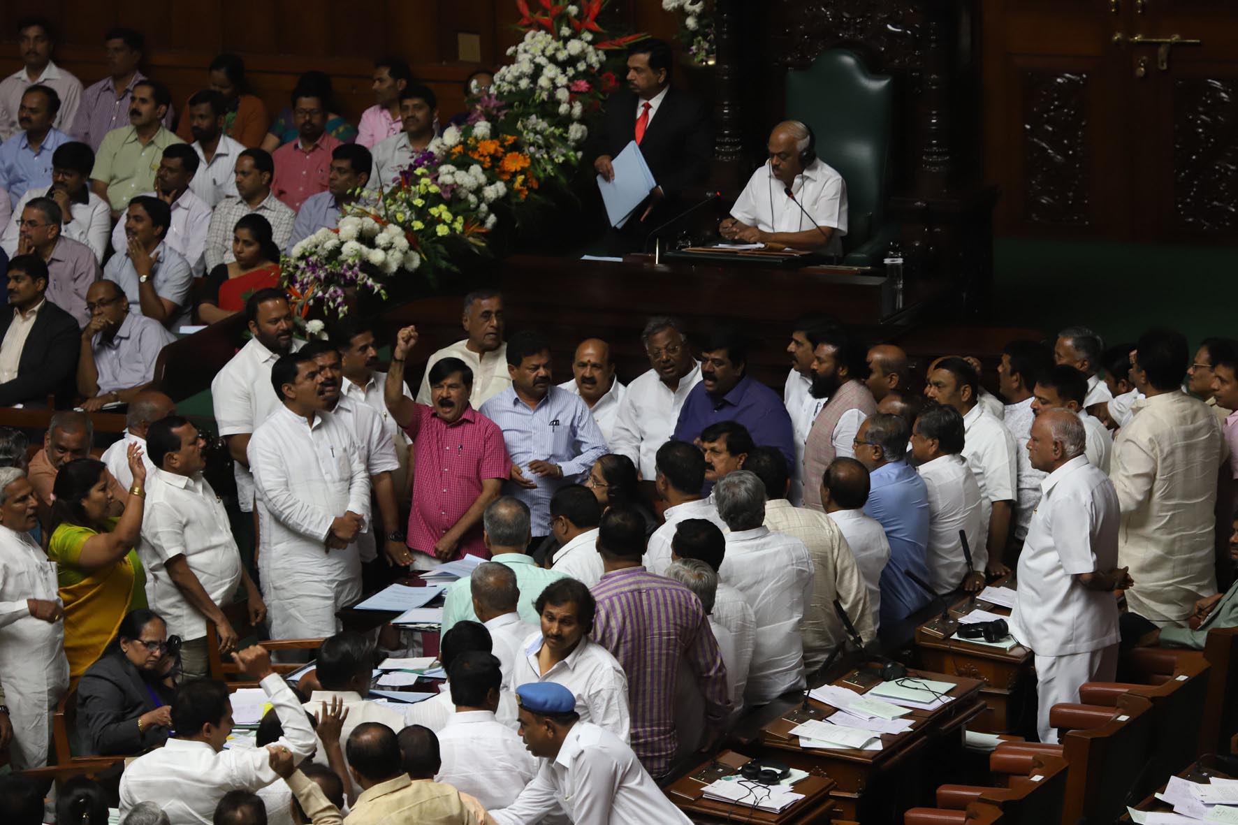 ನಾವು 104 ಸದಸ್ಯರಿದ್ದೇವೆ. ಸದನದಲ್ಲಿ ನಿಮ್ಮ ಗೌರವ ಕಾಪಾಡಬೇಕೆಂದು ನಾವು ಸಹಕರಿಸಿದೆವು. ಹೆದರಿಕೊಂಡು ಕೂತಿರಲಿಲ್ಲ. ನಾವು ಹೇಡಿಗಳಲ್ಲ. ಸರಿಯೋ-ತಪ್ಪೋ ಸದನ ನಡೆಯಬೇಕು. ಸ್ಪೀಕರ್ಗೆ ಅವಮಾನ ಆಗಬಾರದೆಂಬುದು ನಮ್ಮ ನಿಲುವು. ಆದರೆ, ಸರಕಾರ ಹಿಂದೆ ಸರಿಯುವುದಿಲ್ಲವೆಂದು ತನ್ನ ನಿಲುವಿಗೆ ಅಂಟಿಕೊಂಡಿದೆ. ಹೀಗಾಗಿ ನಾವೂ ಯಾವುದೇ ಕಾರಣಕ್ಕೂ ಹಿಂದೆ ಸರಿಯುವುದಿಲ್ಲ ಎಂದರು.