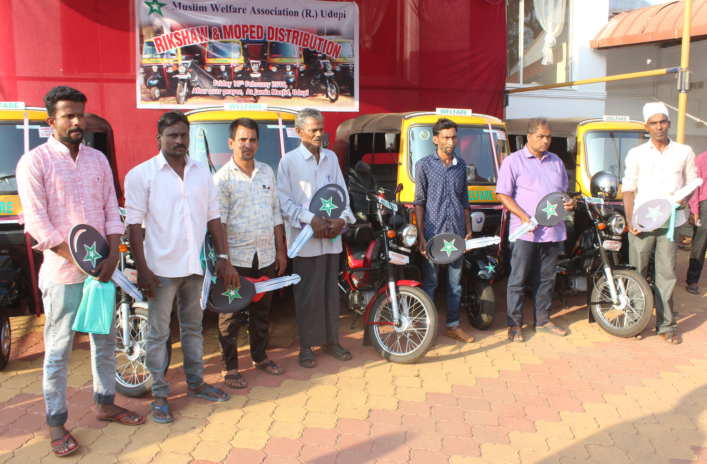 ಉಡುಪಿ, ಫೆ.15: ಉಡುಪಿ ಮುಸ್ಲಿಂ ವೆಲ್ಫೇರ್ ಅಸೋಸಿಯೆಶನ್ ವತಿಯಿಂದ 2018-2019ನೆ ಸಾಲಿನಲ್ಲಿ ಜಮೆಯಾದ 7,99,390ರೂ. ಝಕಾತ್ ಹಣದಿಂದ ಸ್ವ-ಉದ್ಯೋಗ ಯೋಜನೆಯಡಿಯಲ್ಲಿ ಫಲಾನುಭವಿ ಗಳಿಗೆ ನಾಲ್ಕು ಆಪೆ ಸಿಟಿ ರಿಕ್ಷಾ ಮತ್ತು ಮೀನಿನ ವ್ಯಾಪಾರಿಗಳಿಗೆ ಮೂರು ಟಿವಿಎಸ್ ಮೊಪೆಡ್ಗಳನ್ನು ಶುಕ್ರವಾರ ಉಡುಪಿ ಜಾಮಿಯ ಮಸೀದಿಯಲ್ಲಿ ವಿತರಿಸಲಾಯಿತು.