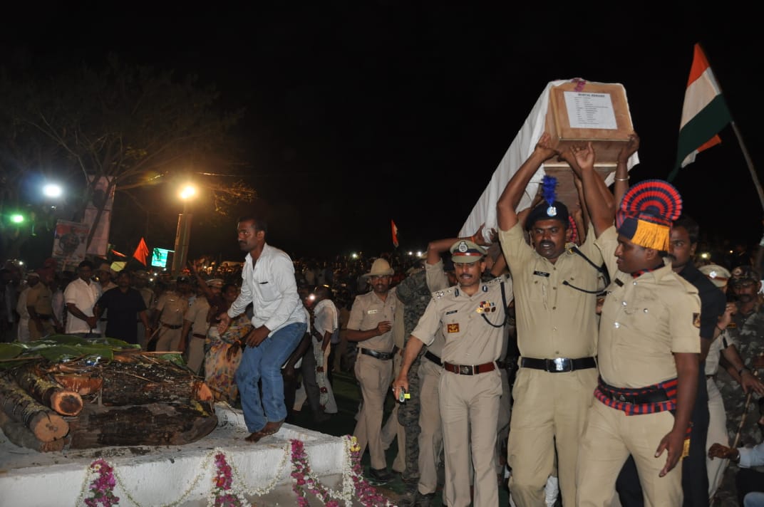 ಮಂಡ್ಯ,ಫೆ.16: ಜಮ್ಮು-ಕಾಶ್ಮೀರದ ಪುಲ್ವಾಮದಲ್ಲಿ ಉಗ್ರರ ದಾಳಿಗೆ ಹುತಾತ್ಮರಾದ ಎಚ್.ಗುರು ಅವರ ಅಂತ್ಯಕ್ರಿಯೆ ಹುಟ್ಟೂರು ಕೆಎಂ ದೊಡ್ಡಿ ಬಳಿ ಸರ್ಕಾರಿ ಜಾಗದಲ್ಲಿ ಸಕಲ ಸರಕಾರಿ ಗೌರವಗಳೊಂದಿಗೆ ನಡೆಯಿತು.