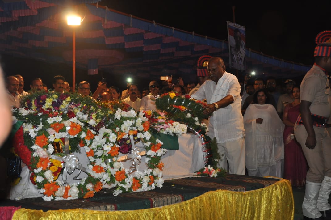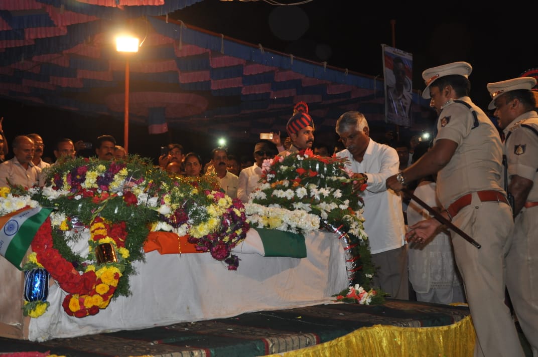 ಅಂತ್ಯಕ್ರಿಯೆಯ ವೇಳೆ ಮುಖ್ಯಮಂತ್ರಿ ಕುಮಾರಸ್ವಾಮಿ, ಉಪಮುಖ್ಯಮಂತ್ರಿ ಪರಮೇಶ್ವರ್, ಮಾಜಿ ಮುಖ್ಯಮಂತ್ರಿ ಎಸ್.ಎಂ ಕೃಷ್ಣ, ಗೃಹ ಸಚಿವ ಎಂ.ಬಿ ಪಾಟೀಲ್, ಸಚಿವರಾದ ಸಾ.ರಾ ಮಹೇಶ್, ಪುಟ್ಟರಾಜು, ಕೆಪಿಸಿಸಿ ಅಧ್ಯಕ್ಷ ದಿನೇಶ್ ಗುಂಡೂರಾವ್, ಶೋಭಾ ಕರಂದ್ಲಾಜೆ, ಪ್ರತಾಪ ಸಿಂಹ ಸಹಿತ ಹಲವಾರು ರಾಜಕೀಯ ಸಾಮಾಜಿಕ ಮುಖಂಡರು ಉಪಸ್ಥಿತರಿದ್ದರು.
