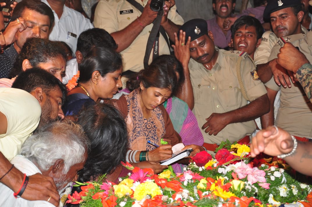 ಯೋಧನ ಪತ್ನಿ ಅಸ್ವಸ್ಥಗೊಂಡಿದ್ದನ್ನು ಕಂಡು ಎಳನೀರು ನೀಡಿ ಸಮಾಧಾನಪಡಿಸಿದರು. ಯೋಧರ ಸಹೋದರರಿಗೂ ಧೈರ್ಯ ತುಂಬಿದರು.