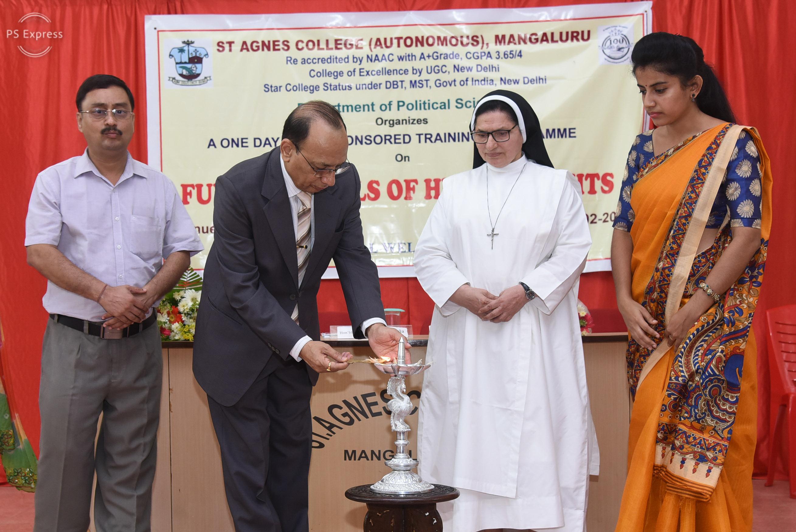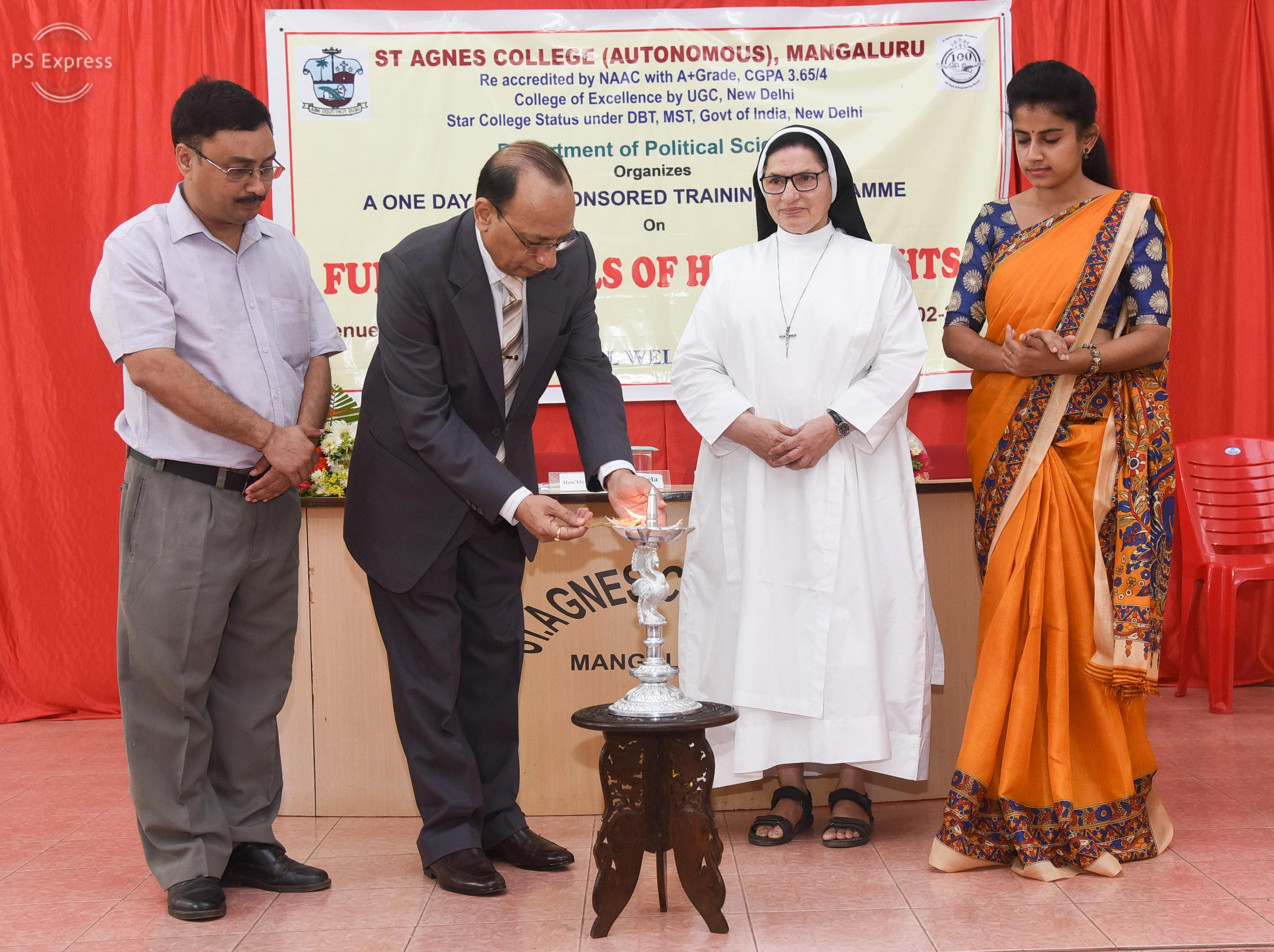 ನಗರದ ಸಂತ ಆಗ್ನೆಸ್ ಕಾಲೇಜಿನಲ್ಲಿ ಇಂದು ರಾಜಕೀಯ ವಿಜ್ಞಾನ ವಿಭಾಗದ ಆಶ್ರಯದಲ್ಲಿ ಮಾನವ ಹಕ್ಕುಗಳ ಮೂಲಭೂತ ವಿಷಯಗಳ ಕುರಿತಂತೆ ಆಯೋಜಿಸಲಾದ ತರಬೇತಿ ಕಾರ್ಯಕ್ರಮವನ್ನು ಉದ್ಘಾಟಿಸಿ ಮಾತನಾಡಿದರು.