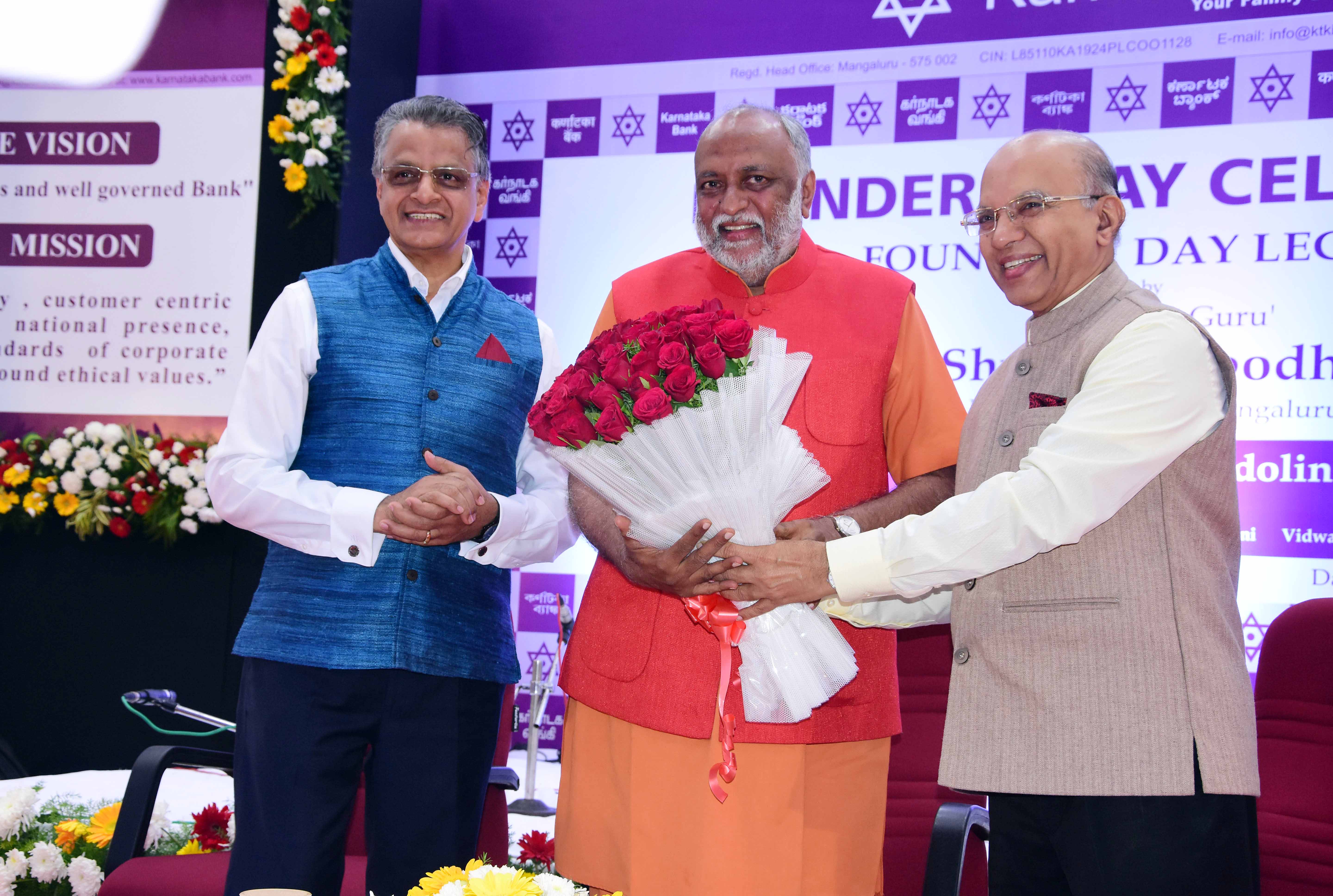 ಕರ್ಣಾಟಕ ಬ್ಯಾಂಕ್ನ ಆಡಳಿತ ನಿರ್ದೇಶಕ ಮತ್ತು ಮುಖ್ಯ ಕಾರ್ಯನಿರ್ವಹಣಾಧಿಕಾರಿ ಮಹಾಬಲೇಶ್ವರ ಎಂ.ಎಸ್ ಸ್ವಾಗತಿಸಿ ಮಾತನಾಡುತ್ತಾ, ಕರ್ಣಾಟಕ ಬ್ಯಾಂಕ್ನ ಸಂಸ್ಥಾಪಕರನ್ನು ಸ್ಮರಿಸಿ ಬ್ಯಾಂಕಿನ ಏಳಿಗೆಗೆ ಕಾರಣರಾದ ಎಲ್ಲರಿಗೂ ಕೃತಜ್ಞತೆ ಸಲ್ಲಿಸಿದರು. ಕೇವಲ 11,580 ರೂ. ಬಂಡವಾದೊಂದಿಗೆ ಆರಂಭವಾದ ಬ್ಯಾಂಕ್ ಪ್ರಸಕ್ತ 1,17,102 ಕೋಟಿ ಆರ್ಥಿಕ ವಹಿವಾಟು ನಡೆಸುವ ಖಾಸಗಿ ರಂಗದ ಅಗ್ರ ಬ್ಯಾಂಕ್ ಆಗಿ ಬೆಳೆದಿದೆ. 65,141 ಕೋಟಿ ಬಂಡವಾಳ ಹೊಂದಿರುವ ಬ್ಯಾಂಕ್, 51,961 ಕೋಟಿ ರೂ. ಸಾಲ ನೀಡಿದೆ. ಸಿಎಸ್ಆರ್ ನೀದಿಯಿಂದ 29.8 ಕೋಟಿ ರೂ ಶಿಕ್ಷಣ, ಆರೋಗ್ಯ, ಸ್ವಚ್ಛತೆ, ಪರಿಸರ ಸಂರಕ್ಷಣೆ, ಮಹಿಳಾ ಸಶಕ್ತತೆ, ಸ್ವಚ್ಛ ಭಾರತ ಅಭಿಯಾನಕ್ಕೆ, ನಚಿಬೆರವು ಶಾಲೆಗಳಿಗೆ ಶೌಚಾಲಯ ನಿರ್ಮಾಣ ಸೇರಿದಂತೆ ಸಮುದಾಯದ ಎಲ್ಲಾ ಜನರಿಗೆ ಸಹಾಯವಾಗುವ ಸೇವಾ ಚಟುವಟಿಕೆಗಳಿಗೆ ನೆರವು ನೀಡುತ್ತಾ ಬಂದಿದೆ. ಭಾರತದ 22 ರಾಜ್ಯ ಎರಡು ಕೇಂದ್ರಾಡಳಿತ ಪ್ರದೇಶ ಸೇರಿದಂತೆ, ದೇಶದ ವಿವಿಧ ಕಡೆಗಳಲ್ಲಿ 829 ಬ್ಯಾಂಕ್ ಶಾಖೆಗಳನ್ನು1264 ಎಟಿಎಂಗಳನ್ನು ಹೊಂದಿರುವ ಕರ್ಣಾಟಕ ಬ್ಯಾಂಕ್ ಕಳೆದ ವರ್ಷ ಡಿಸೆಂಬರ್ ಅಂತ್ಯದಲ್ಲಿ 415.51 ಕೋಟಿ ರೂ ನಿವ್ವಳ ಲಾಭಗಳಿಸಿ, ಶೇ 30 ಡಿವಿಡೆಂಡ್ ನೀಡಿದೆ. 8,200 ಉದ್ಯೋಗಿಗಳನ್ನು ಹೊಂದಿರುವ ಸಂಸ್ಥೆ, 1,89,000 ಶೇರು ದಾರರನ್ನು ಸುಮಾರು ಒಂದು ಕೋಟಿಗೂ ಅಧಿಕ ಗ್ರಾಹಕರನ್ನು ಹೊಂದಿರುವ ಸಂಸ್ಥೆಯಾಗಿ ಬೆಳೆಯಲು ಸಂಸ್ಥಾಪಕರ ಮುಂದಾಲೋಚನೆ ಹಿರಿಯರ ಮಾರ್ಗದರ್ಶನ ಹಾಗೂ ಹಿಂದಿನ ಅಧ್ಯಕ್ಷರು ಆಡಳಿತ ಮಂಡಳಿ ಶೇರುದಾರರು ಮತ್ತು ಗ್ರಾಹಕರ ಸಹಕಾರದಿಂದ ಸಾಧ್ಯವ ಆಗಿದೆ ಎಂದರು.