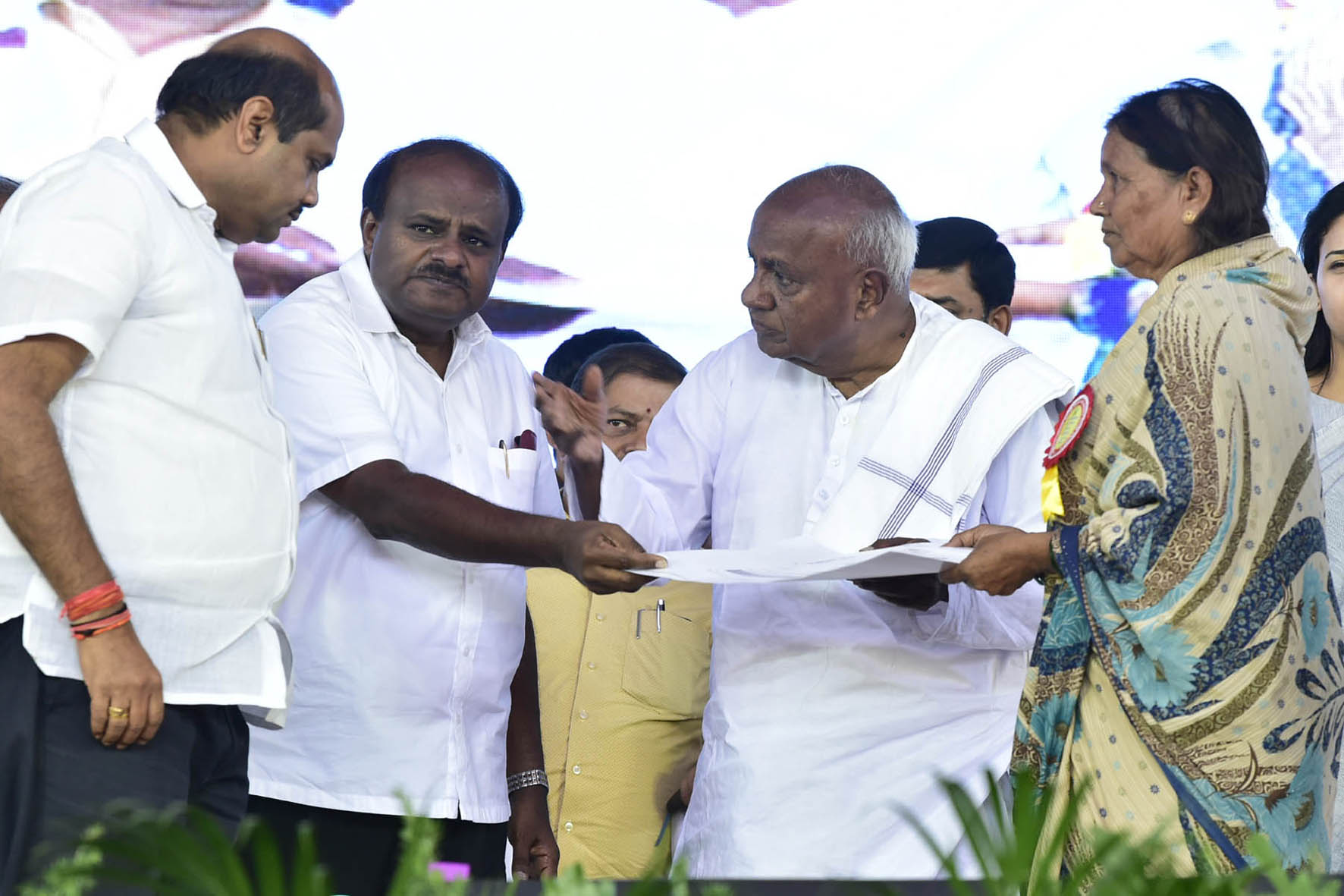 ಮಾಜಿ ಪ್ರಧಾನ ಹೆಚ್.ಡಿ.ದೇವೇಗೌಡ ಮಾತನಾಡಿ, ರೈತರು ಈ ನಾಡಿನ ಬೆನ್ನೆಲುಬು. ಅವರಿಗೆ ಶಕ್ತಿ ತುಂಬುವ ಕೆಲಸವನ್ನು ರಾಜ್ಯ ಸರ್ಕಾರ ಮಾಡುತ್ತಿದೆ ಎಂದರು.