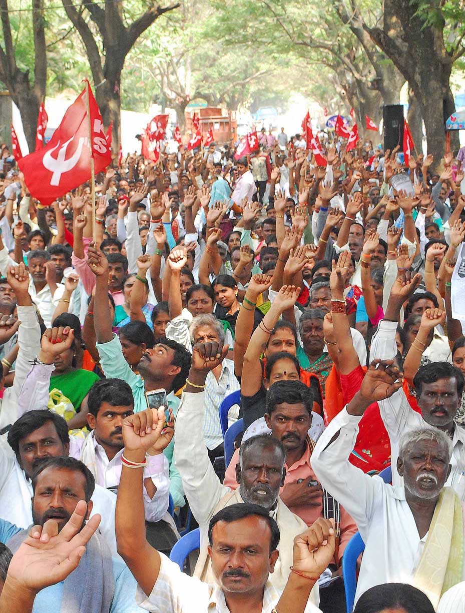 ಈ ಸಂದರ್ಭದಲ್ಲಿ ಸಂಘದ ಅಧ್ಯಕ್ಷ ಜಿ.ಸಿ.ಬಯ್ಯಿರೆಡ್ಡಿ ಮಾತನಾಡಿ, ಕೃಷಿ ಕಾರ್ಮಿಕರು 15 ವರ್ಷಗಳಿಂದ ನಡೆಸಿದ ಹೋರಾಟದಿಂದ ಮಾಜಿ ಸಚಿವ ಕಾಗೋಡು ತಿಮ್ಮಪ್ಪ ಅವರ ಮುತುವರ್ಜಿಯಿಂದ ಗೋಮಾಳ ಭೂಮಿಯನ್ನು ಉಳುಮೆ ಮಾಡುತ್ತಿದ್ದ ಬಗರ್ ಹುಕುಂ ಸಾಗುವಳಿ ರೈತರಿಗೆ ಸಕ್ರಮ ಮಾಡಲು ಅಗತ್ಯವಿದ್ದ ಕಂದಾಯ ಕಾನೂನುಗೆ ತಿದ್ದಪಡಿ ಹಾಗೂ ವಿಶೇಷವಾಗಿ ಬಗರ್ಹುಕುಂ ಸಾಗುವಳಿಯ ಸಕ್ರಮಕ್ಕಾಗಿ ಹೊಸದಾಗಿ ಅರ್ಜಿ ಹಾಕಿಕೊಳ್ಳಲು ಅವಕಾಶ ನೀಡುವ ಮತ್ತೊಂದು ತಿದ್ದುಪಡಿಯನ್ನು ಹಿಂದಿನ ಸರಕಾರ ಮಾಡಿತು. ಆದರೆ, ಅದು ಇಲ್ಲಿಯತನಕ ಅನುಷ್ಠಾನವಾಗದೆ ರೈತರು ಸಮಸ್ಯೆಗೆ ಸಿಲುಕುವಂತಾಗಿದೆ ಎಂದು ತಿಳಿಸಿದರು.
