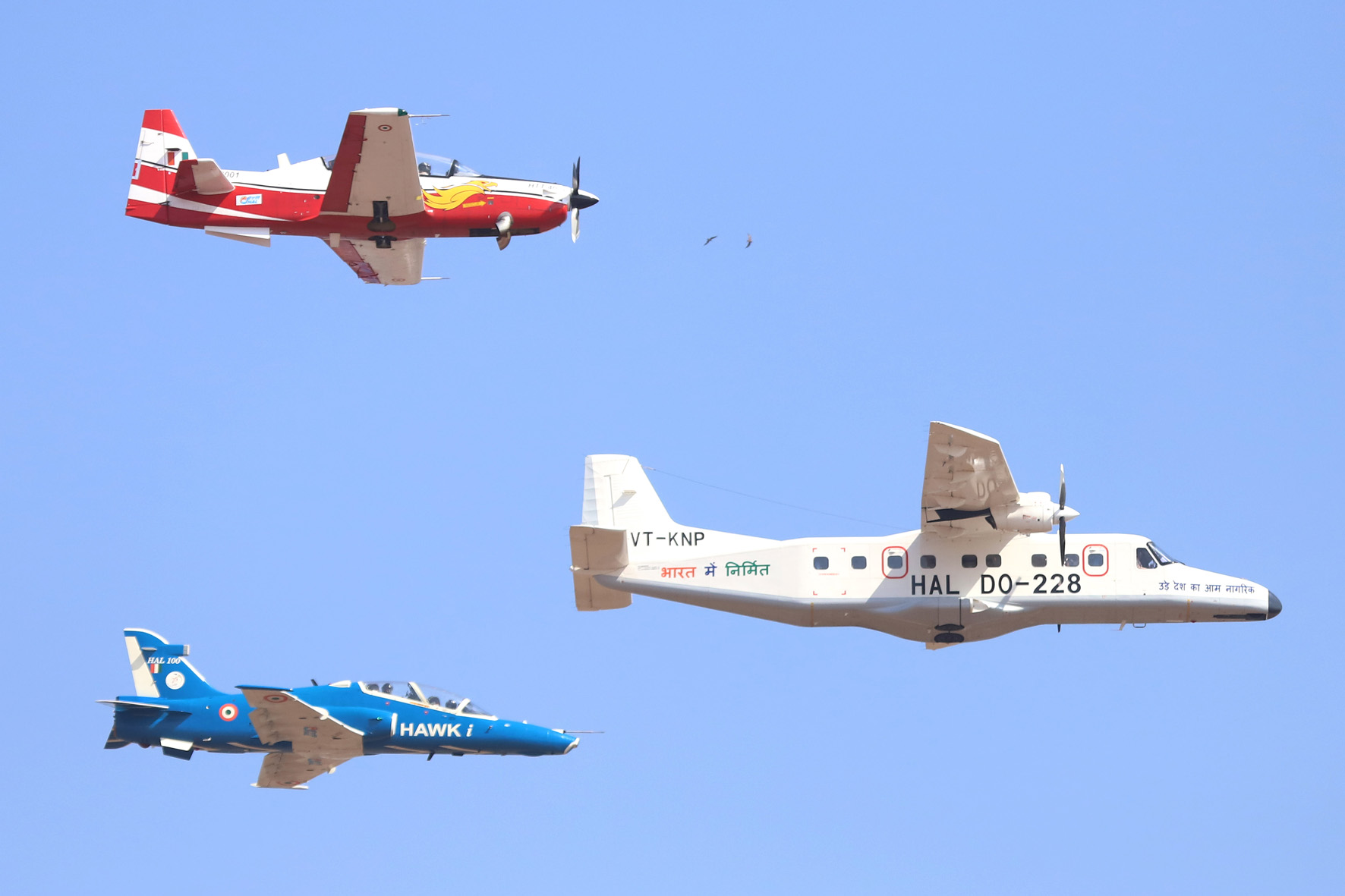 ಭಾರತದ ಯುದ್ಧ ವಿಮಾನಗಳು ಕೇವಲ ಯುದ್ಧಕ್ಕೆ ಮಾತ್ರ ಸೀಮಿತವಲ್ಲ. ಜನತೆಯ ಮನವನ್ನು ಮುದಗೊಳಿಸಬಲ್ಲವು ಎಂಬುದಕ್ಕೆ ಇಂದು ನಡೆದ ವೈಮಾನಿಕ ಪ್ರದರ್ಶನವೆ ಸಾಕ್ಷಿಯಾಯಿತು. ಬಾನಂಗಳದಲ್ಲಿ ಗಾಳಿ ಪಟದಂತೆ ಹಾರಾಡುತ್ತಾ ಬಣ್ಣ. ಬಣ್ಣಗಳ ಚಿತ್ತಾರಗಳನ್ನು ಮೂಡಿಸುತ್ತಾ ನೋಡುಗರನ್ನು ಪುಳಕಗೊಳಿಸಿದವು. ಭಾರತದ ಯುದ್ಧ ವಿಮಾನಗಳಾದ ಸುಖೋಯ್, ನೇತ್ರಾ, ತೇಜಸ್ ವಿಮಾನಗಳ ಹಾರಾಟ ಅತ್ಯಾಕರ್ಷಕವಾಗಿದ್ದವು. ಆಕಾಶದಿಂದ ಭೂಮಿಗೆ ಈ ವಿಮಾನ ಅಪ್ಪಳಿಸಿಬಿಟ್ಟಿತ್ತೇನೋ ಎನ್ನುವಷ್ಟರಲ್ಲಿ ಮತ್ತೆ ವಿಮಾನವನ್ನು ಆಕಾಶದತ್ತ ತಿರುಗಿಸುವ ಚಾಣಾಕ್ಷತನ ಉಲ್ಪಾಪಲ್ಟಾ ಹೊಡೆಯುತ್ತಾ ವಿಮಾನವನ್ನು ಹೇಗೆಂದರೆ ಹಾಗೆ ಸಿಡಿಸುತ್ತಾ ನಡೆದ ಪ್ರದರ್ಶನ ಪ್ರೇಕ್ಷಕರ ಎದೆಯನ್ನು ಕ್ಷಣಕಾಲ ಝಲ್ ಎನಿಸಿದವು. ಆಕರ್ಷಕ ಕಸರತ್ತು ನೀಡಿದ ಸೇನಾ ಪೈಲೆಟ್ಗಳು ತಮ್ಮ ವಿಮಾನಗಳನ್ನು ಆಟಿಕೆ ವಸ್ತುವಿನಂತೆ ಬಾನಂಗಳದಲ್ಲಿ ತಿರುಗಾಡಿಸುತ್ತಿದ್ದ ದೃಶ್ಯಗಳನ್ನು ನೋಡಿದ ಜನತೆ ಪೈಲಟ್ಗಳ ಸಾಹಸ, ಧೈರ್ಯವನ್ನು ಮುಕ್ತಕಂಠದಿಂದ ಅಭಿನಂದಿಸುತ್ತಲೆ ವಿಮಾನಗಳತ್ತ ಕೈಬೀಸಿ ತಮ್ಮ ಸಂತೋಷವನ್ನು ವ್ಯಕ್ತಪಡಿಸಿದರು.