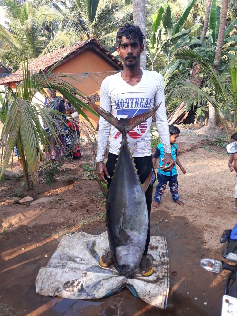 ಸ್ಥಳೀಯ ಮೀನುಗಾರರಾದ ಸುಧೀರ್ ಹಾಗೂ ವಿಶ್ವನಾಥ್ ಸಹೋದರರಿಗೆ ಹೊಳೆಯಲ್ಲಿ ಹಾಕಿರುವ ಬಲೆಗೆ 30 ಕೆ.ಜಿ. ತೂಕದ ಮೀನು ಸಿಕ್ಕಿದೆ. ಆಳ ಸಮುದ್ರದಲ್ಲಿ ಇರುವ ಈ ಮೀನು ಹೊಳೆಯಲ್ಲಿ ಸಿಕ್ಕಿರುವುದು ಎಲ್ಲರಲ್ಲೂ ಅಚ್ಚರಿ ಮೂಡಿಸಿದೆ.