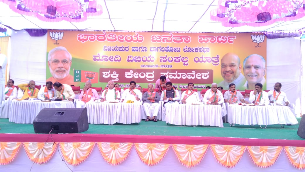 ವಿಜಯಪುರದ ಕನಕದಾಸ ಬಡಾವಣೆಯ ಬಳಿ ಶನಿವಾರ ಜರುಗಿದ ಭಾರತೀಯ ಜನತಾ ಪಕ್ಷದ ವಿಜಯಪುರ ಹಾಗೂ ಬಾಗಲಕೋಟೆ ಲೋಕಸಭಾ ಕ್ಷೇತ್ರದ ಮೋದಿ ವಿಜಯ ಸಂಕಲ್ಪ ಯಾತ್ರೆ ಹಾಗೂ ಶಕ್ತಿ ಕೇಂದ್ರ ಸಮಾವೇಶ ಉದ್ಘಾಟಿಸಿ ಮಾತನಾಡಿದ ಅವರು, ರಾಜ್ಯ ಸರ್ಕಾರದ ಕಾರ್ಯವೈಖರಿಯನ್ನು ವ್ಯಂಗ್ಯಭರಿತವಾಗಿ ಟೀಕಿಸಿದರು. ರಾಜ್ಯ ಸರ್ಕಾರ ತ್ರಿಚಕ್ರ ವಾಹನದಂತೆ ಸಾಗಿದೆ. ಸ್ಟೇರಿಂಗ್ ಒಬ್ಬರ ಬಳಿ ಇದೆ. ಹ್ಯಾಂಡಲ್ ಒಬ್ಬರ ಕೈಯಲ್ಲಿದೆ, ಹಾರ್ನ್ ಇನ್ನೊಬ್ಬರ ಕೈಯಲ್ಲಿದೆ. ಮುಖ್ಯಮಂತ್ರಿಯಂತೂ ನಾಮಕಾವಾಸ್ತೆ ಆಗಿದ್ದಾರೆ. ಅವರಿಗೆ ಇದು ಕೇವಲ ನೋಡುವುದಷ್ಟೇ ಕೆಲಸ ಎಂದರು. ರಾಜ್ಯದಲ್ಲಿ ಆಡಳಿತ ಸುವ್ಯವಸ್ಥೆ ಹಾಳಾಗಿದ್ದು, ರಾಜ್ಯವನ್ನು ಸರ್ವನಾಶ ಮಾಡುವ ಕಾರ್ಯದಲ್ಲಿ ರಾಜ್ಯ ಸರ್ಕಾರ ತೊಡಗಿದೆ ಎಂದು ಆಕ್ರೋಶ ವ್ಯಕ್ತಪಡಿಸಿದರು.