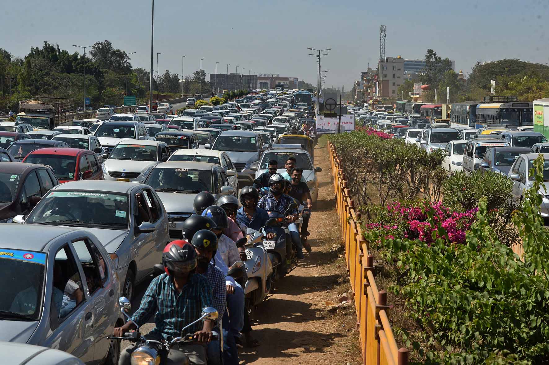 ಏರೋ ಇಂಡಿಯಾ ವೈಮಾನಿಕ ಪ್ರದರ್ಶನ ಹಿನ್ನೆಲೆಯಲ್ಲಿ ಶನಿವಾರ ಮತ್ತು ರವಿವಾರ ನಗರದ ವಿಮಾನ ನಿಲ್ದಾಣ ರಸ್ತೆಯ ಉದ್ದಕ್ಕೂ ವಾಹನ ದಟ್ಟಣೆ ಅಧಿಕವಾಗಿತ್ತು. ಸುಡುಬಿಸಿಲಿನಲ್ಲಿ ವಾಹನ ಸವಾರರು ಪರದಾಡುವ ಪರಿಸ್ಥಿತಿ ನಿರ್ಮಾಣವಾಗಿತ್ತು. ಹುಣಸಮಾರನಹಳ್ಳಿಯಿಂದ ಯಲಹಂಕದ ಕೋಗಿಲು ವೃತ್ತದವರೆಗೆ ವಾಹನಗಳು ಸಾಲು ಸಾಲಾಗಿ ನಿಂತಿದ್ದವು. ವಾಹನ ಇಲ್ದಾಣ ಮಾಡುವ ಗೇಟ್ ಸಂಖ್ಯೆ 5,6 ಹಾಗೂ7ರ ಬಳಿಯೂ ದಟ್ಟಣೆ ಎದ್ದು ಅಧಿಕವಾಗಿತ್ತು.