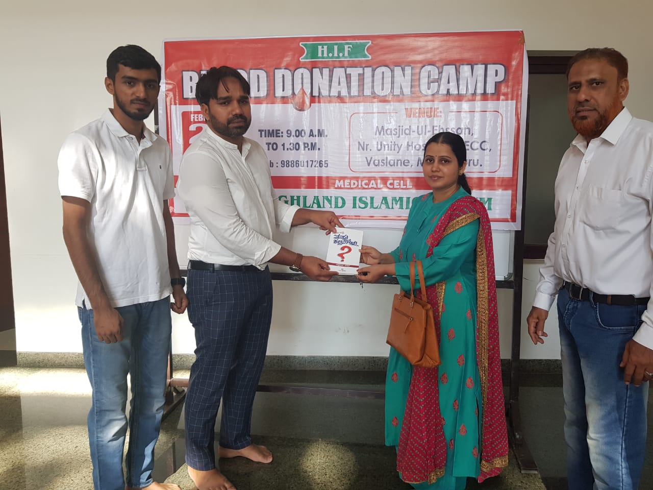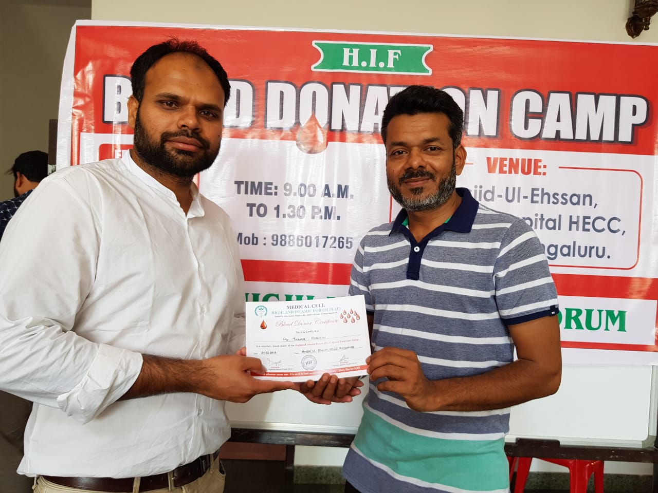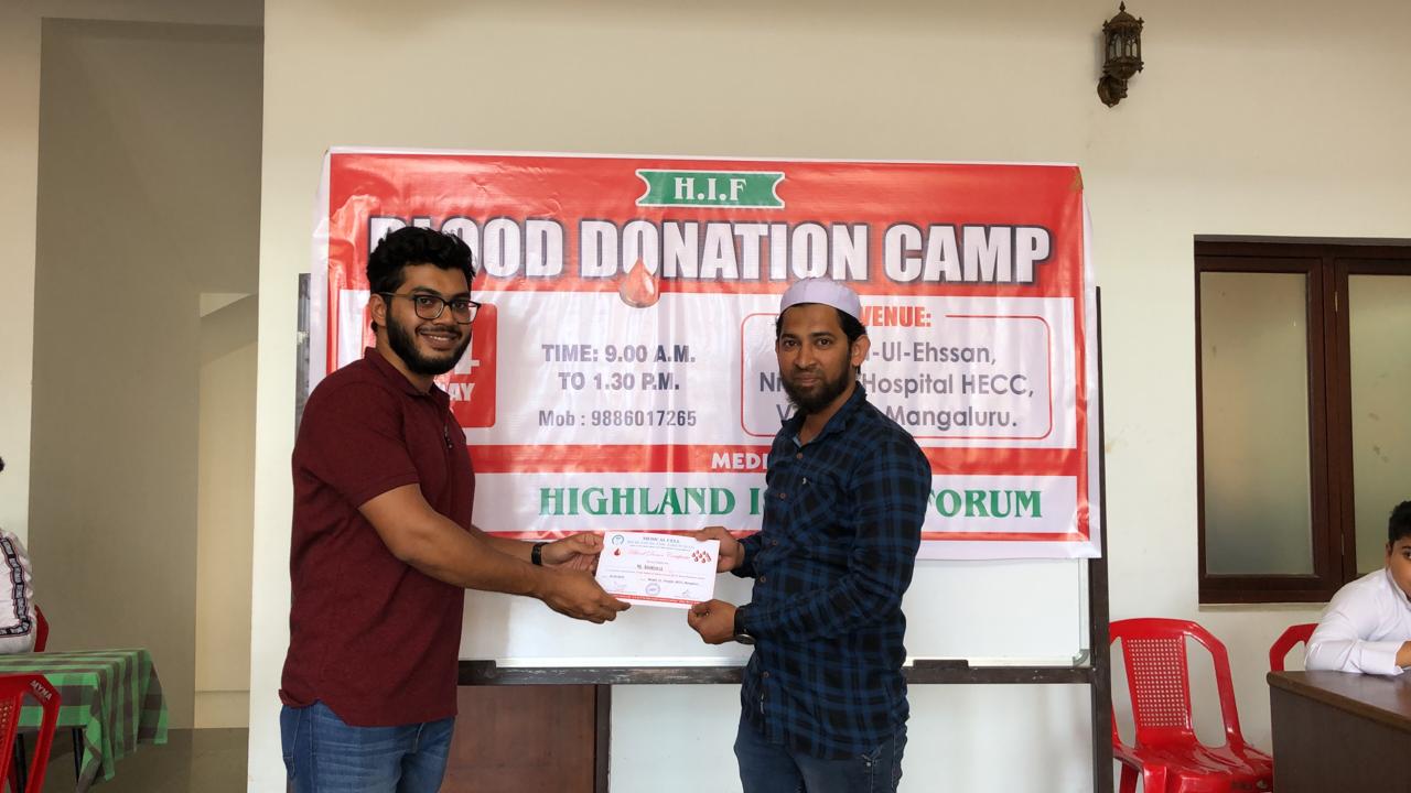ಶಿಬಿರದ ಮೊದಲ ದಾನಿಯಾಗಿ ಮಂಗಳೂರಿನ ಪ್ರದೀಪ್ ಕುಮಾರ್ ರಕ್ತದಾನ ಮಾಡಿದರು. ಒಟ್ಟಾರೆ 173 ಯೂನಿಟ್ ರಕ್ತ ಸಂಗ್ರಹಿಸಲಾಯಿತು. ಎಚ್ಐಎಫ್ ಪ್ರತಿ ಆರು ತಿಂಗಳಿಗೊಮ್ಮೆ ಫಳ್ನೀರ್ನ ಮಸ್ಜಿದುಲ್ ಇಹ್ಸಾನ್ ನಲ್ಲಿ ರಕ್ತದಾನ ಶಿಬಿರವನ್ನು ಆಯೋಜಿಸುತ್ತಿದ್ದು, ಮಂಗಳೂರು ಮತ್ತು ಹೊರವಲಯದ ಎಲ್ಲ ಸಮುದಾಯದ ಜನರು ಇದರ ಲಾಭ ಪಡೆಯುತ್ತಾರೆ. ಕಾರ್ಯಕ್ರಮ ಸಂಚಾಲಕ ಮುಹಮ್ಮದ್ ರಿಝ್ವಾನ್ ಕಾರ್ಯಕ್ರಮವನ್ನು ನಿರೂಪಿಸಿ, ಅತಿಥಿಗಳನ್ನು ಸ್ವಾಗತಿಸಿದರು.