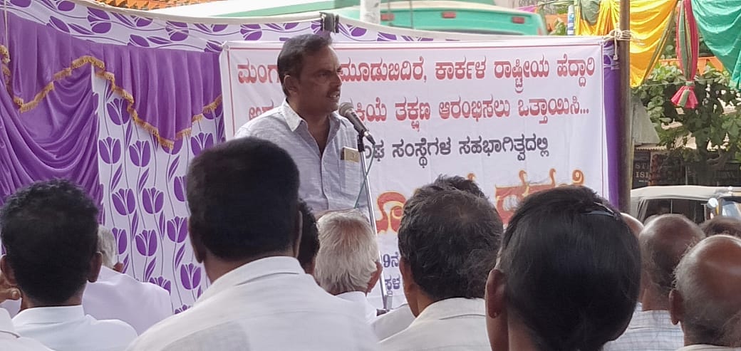 ಕಾರ್ಕಳ, ಮೂಡುಬಿದಿರೆ, ಮಂಗಳೂರು ಹೆದ್ದಾರಿ ಅಗಲೀಕರಣ ಹೋರಾಟ ಸಮಿತಿಯಿಂದ ಗುರುಪರ-ಕೈಕಂಬ ಜಂಕ್ಷನ್ನಲ್ಲಿ ಹೆದ್ದಾರಿ ಅಗಲೀಕರಣಕ್ಕೆ ಒತ್ತಾಯಿಸಿ ನಡೆದ ಸಾಮೂಹಿಕ ಧರಣಿಯನ್ನುದ್ದೇಶಿಸಿ ಅವರು ಮಾತನಾಡಿದರು.