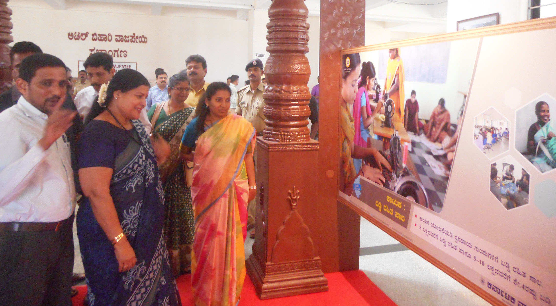 ಉಡುಪಿ, ಮಾ.2: ವಾರ್ತಾ ಮತ್ತು ಸಾರ್ವಜನಿಕ ಸಂಪರ್ಕ ಇಲಾಖೆಯ ವತಿಯಿಂದ ಜಿಲ್ಲಾಧಿಕಾರಿ ಕಚೇರಿ ಆವರಣದಲ್ಲಿ ನಡೆಯುತ್ತಿರುವ ರಾಜ್ಯ ಸರಕಾರದ ವಿವಿಧ ಯೋಜನೆಗಳ ಮಾಹಿತಿ ನೀಡುವ ವಸ್ತು ಪ್ರದರ್ಶನಕ್ಕೆ ಶನಿವಾರ ಮಹಿಳಾ ಮತ್ತು ಮಕ್ಕಳ ಅಭಿವೃದ್ಧಿ ಸಚಿವೆ ಡಾ. ಜಯಮಾಲಾ ಭೇಟಿ ನೀಡಿದರು.