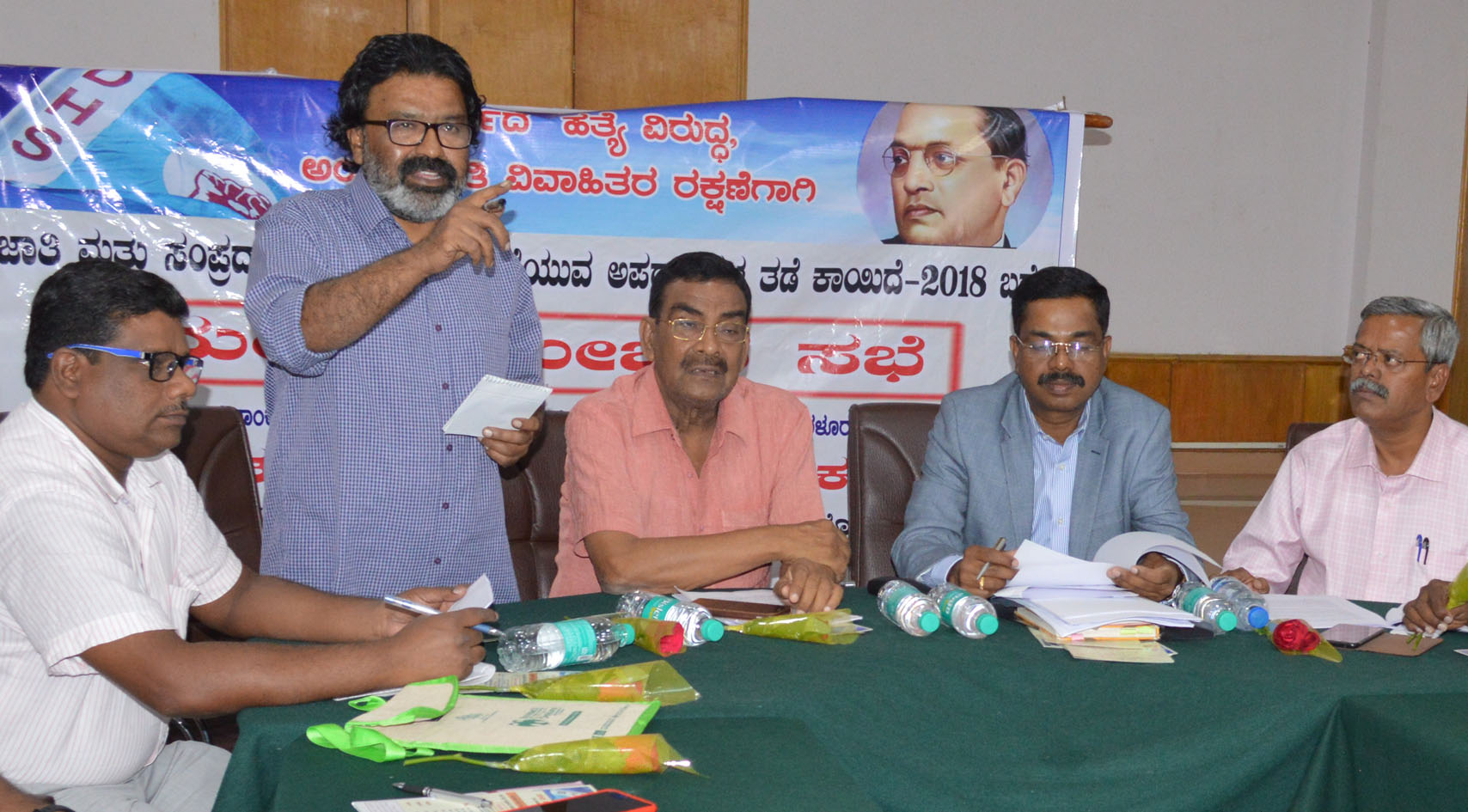 ಶನಿವಾರ ನಗರದ ಶಾಸಕರ ಭವನದಲ್ಲಿ ದಲಿತ ಹಕ್ಕುಗಳ ಸಮಿತಿ ವತಿಯಿಂದ ಆಯೋಜಿಸಿದ್ದ ಜಾತಿ ಮತ್ತು ಸಂಪ್ರದಾಯದ ಹೆಸರಿನಲ್ಲಿ ನಡೆಯುವ ಅಪರಾಧ ತಡೆ ಕಾಯ್ದೆ 2018 ಕುರಿತ ದುಂಡು ಮೇಜಿನ ಸಭೆಯಲ್ಲಿ ಪಾಲ್ಗೊಂಡು ಅವರು ಮಾತನಾಡಿದರು.