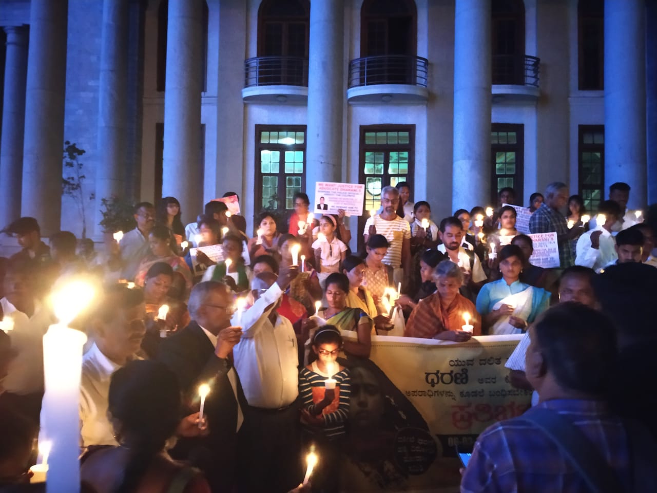 ಬುಧವಾರ ಜಸ್ಟೀಸ್ ಫಾರ್ ಅಡ್ವೊಕೇಟ್ ಧರಣಿ ಕಮಿಟಿ ನೇತೃತ್ವದಲ್ಲಿ ನಗರದ ಮೈಸೂರ್ ಬ್ಯಾಂಕ್ ವೃತ್ತದಿಂದ ಪುರಭವನದ ಮುಂಭಾಗದವರೆಗೂ ಹಮ್ಮಿಕೊಂಡಿದ್ದ ಪ್ರತಿಭಟನಾ ಜಾಥಾದಲ್ಲಿ, ನೂರಾರು ಸಂಖ್ಯೆಯಲ್ಲಿ ವಕೀಲರು, ವಿದ್ಯಾರ್ಥಿಗಳು ಹಾಗೂ ಹೋರಾಟಗಾರರು ಭಾಗವಹಿಸಿ, ವಕೀಲೆ ಧರಣಿ ಆತ್ಮಹತ್ಯೆಗೆ ಕಾರಣರಾದವರನ್ನು ಬಂಧಿಸಿ ಸೂಕ್ತ ಕ್ರಮ ಕೈಗೊಳ್ಳುವವರೆಗೂ ನಿರಂತರವಾಗಿ ಪ್ರತಿಭಟನೆ ಹಮ್ಮಿಕೊಳ್ಳಲಾಗುವುದು ಎಂದು ಎಚ್ಚರಿಸಿದರು.