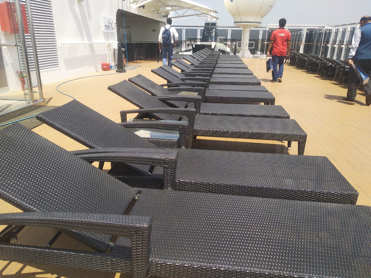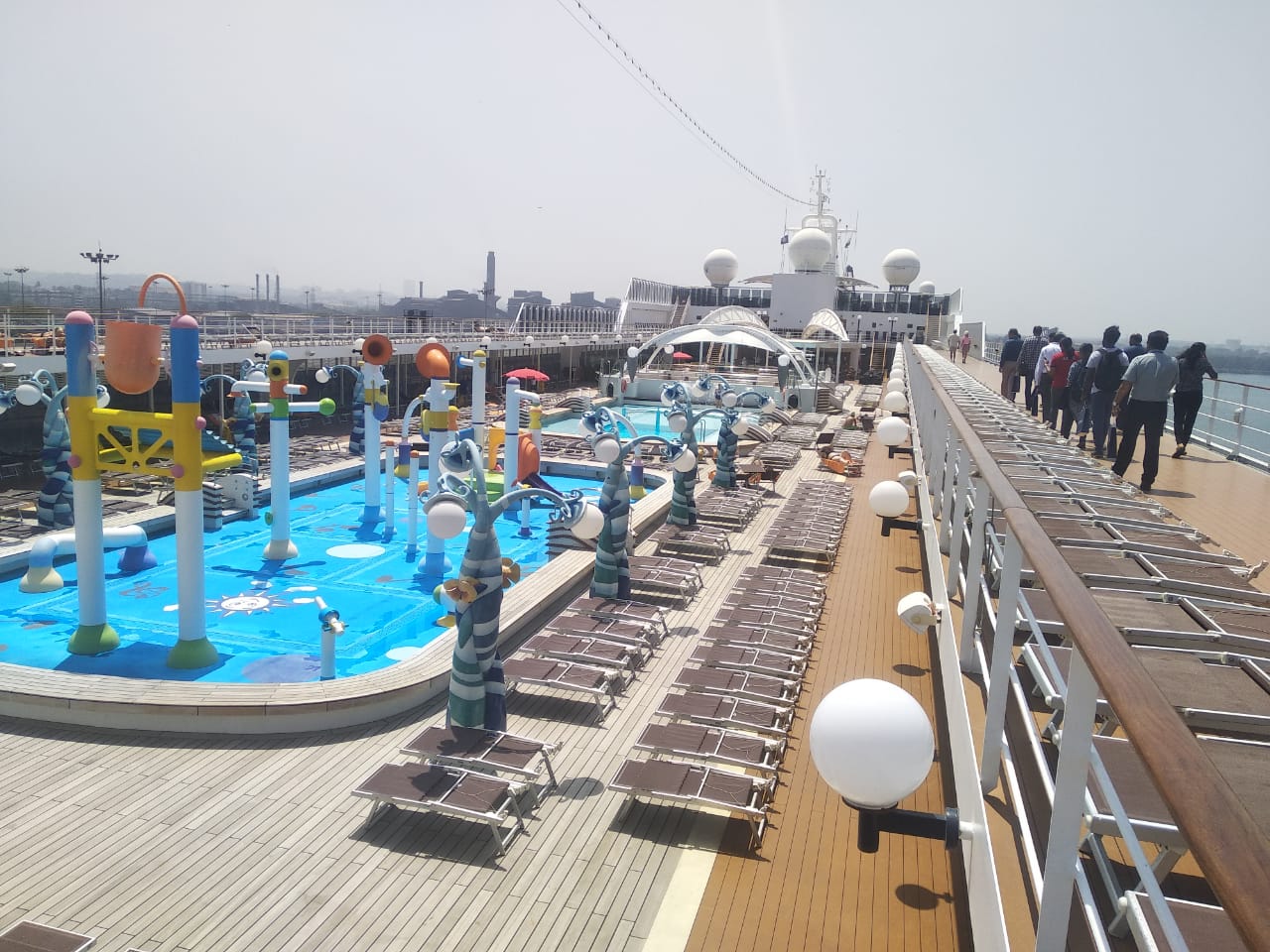 ಹಡಗಿನ ತೆರೆದ ಮೇಲ್ಛಾವಣಿಯಲ್ಲಿ ಸಮುದ್ರದ ಸೌಂದರ್ಯ ವೀಕ್ಷಣೆಯ ಜತೆಗೆ ಸ್ವಿಮ್ಮಿಂಗ್ ಪೂಲ್, ಅಮ್ಯೂಸ್ಮೆಂಟ್ ಪಾರ್ಕ್, ಆರಾಮದಾಯಕ ಆಸನಗಳು, ತಿಂಡಿ ತಿನಿಸುಗಳ ಮಾಲ್ಗಳು ಎಲ್ಲವೂ ಲಭ್ಯ.