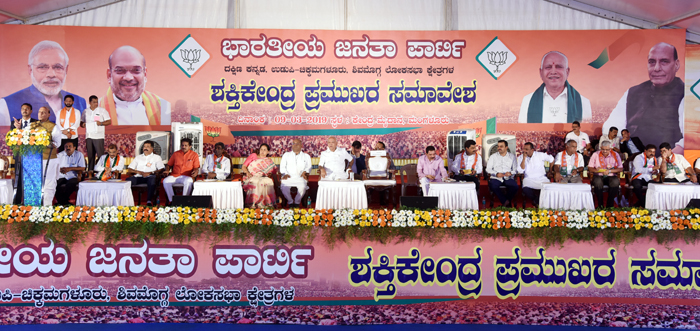 ನಗರದ ನೆಹರೂ ಮೈದಾನದಲ್ಲಿ ಇಂದು ಹಮ್ಮಿಕೊಂಡಿದ್ದ ದ.ಕ, ಉಡುಪಿ, ಚಿಕ್ಕಮಗಳೂರು, ಶಿವಮೊಗ್ಗ ಲೋಕಸಭಾ ಕೇಂದ್ರ ವ್ಯಾಪ್ತಿ ಶಕ್ತಿ ಕೇಂದ್ರಗಳ ಪ್ರತಿನಿಧಿಗಳ ಸಮಾವೇಶವನ್ನು ಉದ್ಘಾಟಿಸಿ ಅವರು ಮಾತನಾಡುತ್ತಿದ್ದರು.