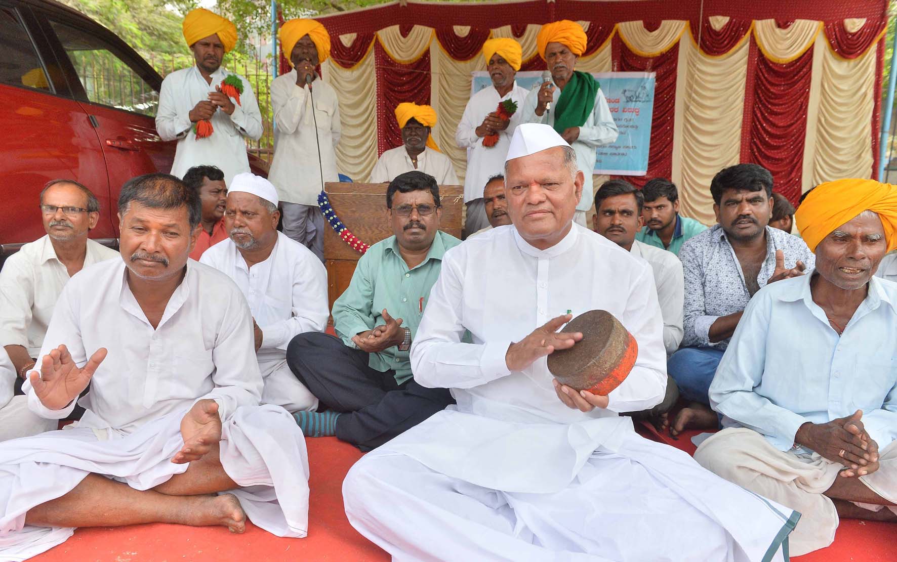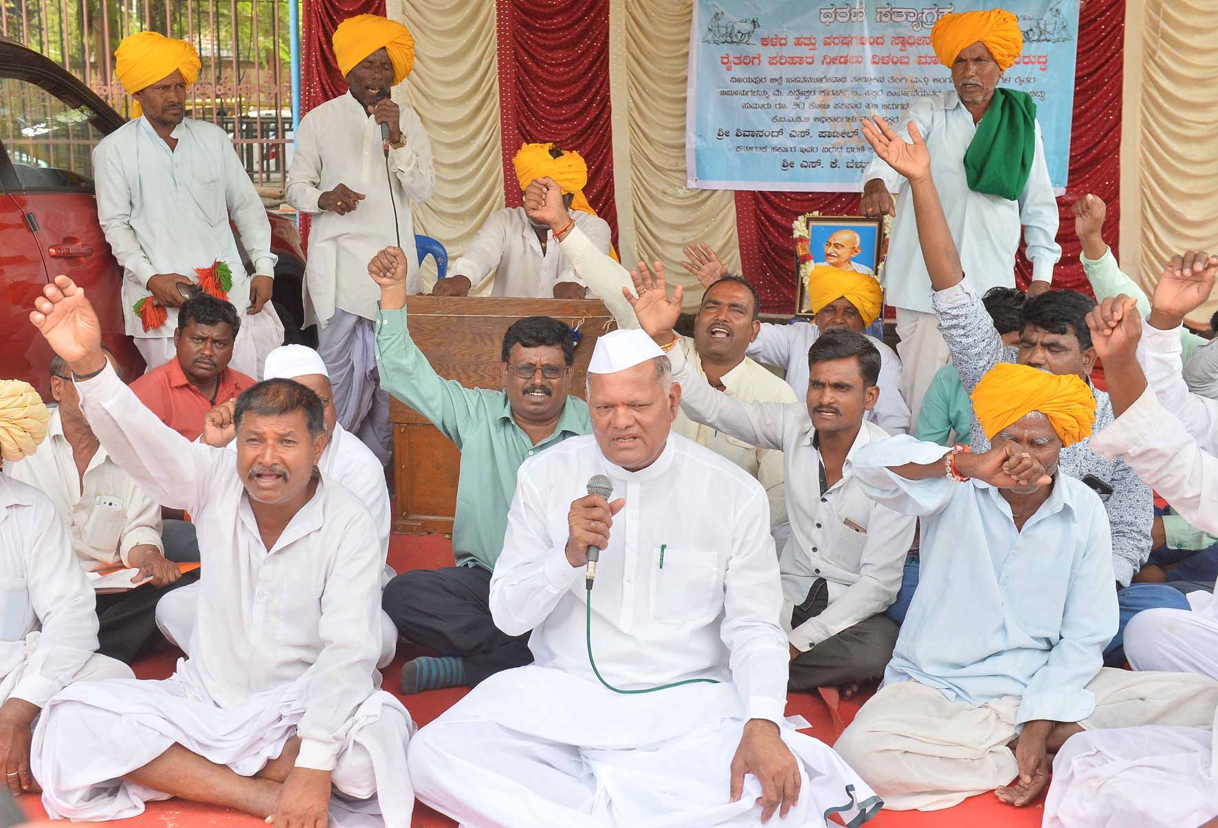 ಶನಿವಾರ ನಗರದ ಆನಂದ್ರಾವ್ ವೃತ್ತದ ಗಾಂಧಿ ಪ್ರತಿಮೆ ಎದುರು ಮಾಜಿ ಸಚಿವ ಎಸ್.ಕೆ.ಬೆಳ್ಳುಬ್ಬಿ ನೇತೃತ್ವದಲ್ಲಿ ಜಮಾಯಿಸಿದ ರೈತರು, ತಮ್ಮ ಬೇಡಿಕೆಗಳನ್ನು ಈಡೇರಿಸಬೇಕೆಂದು ಆಗ್ರಹಿಸಿದರು.