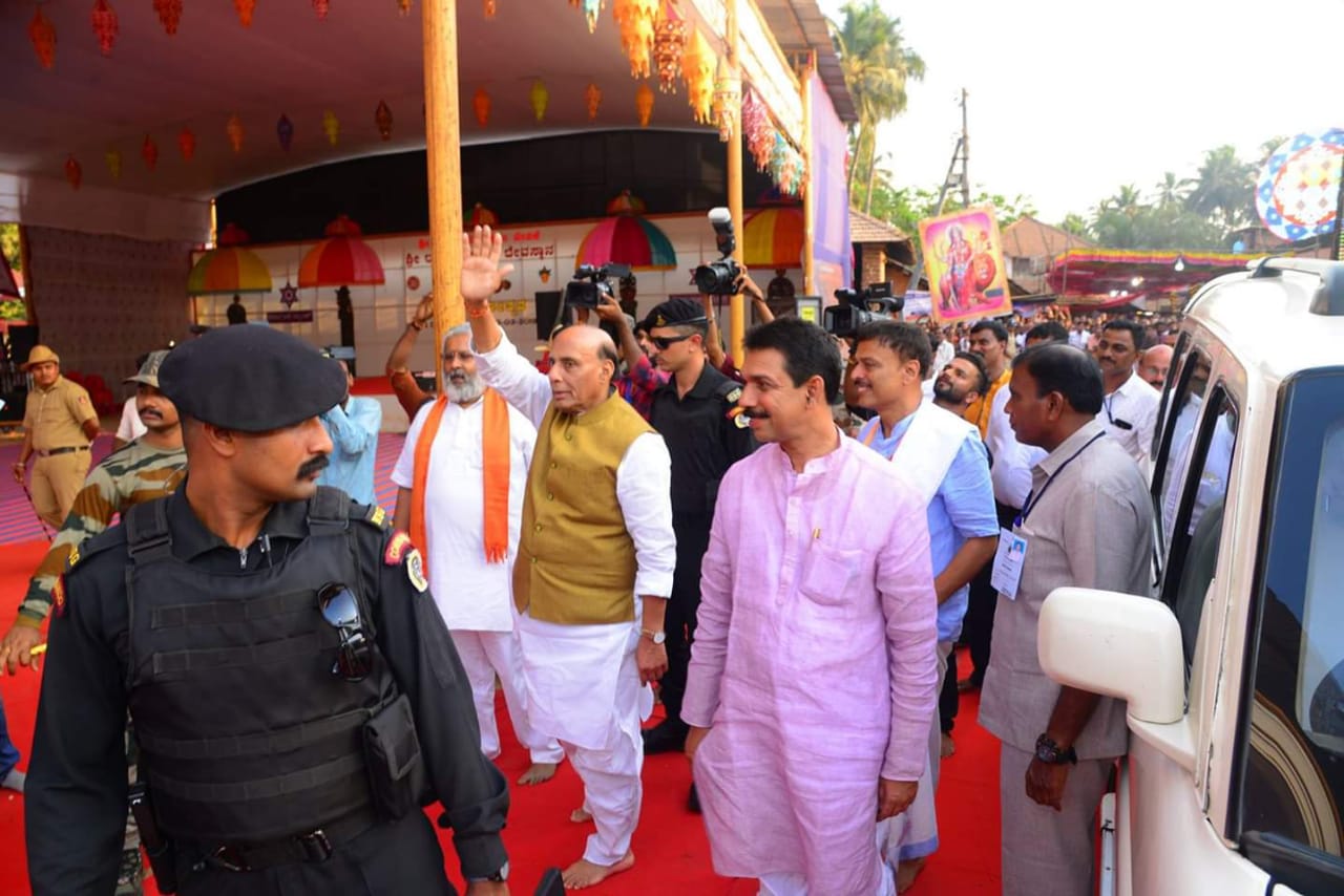 ಗೃಹ ಸಚಿವ ರಾಜನಾಥ ಸಿಂಗ್ ಸುಮಾರು ಸಂಜೆ 5.23 ಕ್ಕೆ ಅಗಮಿಸಿದ್ದು, 5.40ರ ಹೊತ್ತಿಗೆ ದೇವಳದಿಂದ ವಿಮಾನ ನಿಲ್ದಾಣದತ್ತ ನಿರ್ಗಮಿಸಿದರು. ಈ ಸಂದರ್ಭದಲ್ಲಿ ದೇವಳದ ಹೊರಭಾಗದಲ್ಲಿ ನಿಂತಿದ್ದ ಜನಸ್ತೋಮದತ್ತ ಕೈ ಬೀಸಿದಾಗ ಜೈಕಾರ ಮೊಳಗಿತು. ಸಚಿವರು ತೆರಳುತ್ತಿದ್ದಂತೆ ಸಾರ್ವಜನಿಕರಿಗೆ ದೇವರ ದರ್ಶನಕ್ಕೆ ಅನುವು ಮಾಡಿಕೊಡಲಾಯಿತು. ಐಜಿಪಿ ಅರುಣ್ ಚಕ್ರವರ್ತಿ ಅವರ ನೇತೃತ್ವದಲ್ಲಿ ಬಿಗು ಪೊಲೀಸ್ ಬಂದೋಬಸ್ತ್ ಏರ್ಪಡಿಸಲಾಗಿತ್ತು.