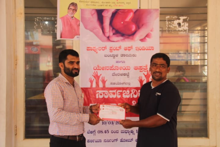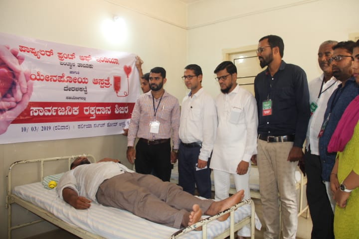 ಬಂಟ್ವಾಳ, ಮಾ.10: ಪಾಪ್ಯುಲರ್ ಫ್ರಂಟ್ ಅಫ್ ಇಂಡಿಯಾ ಬಂಟ್ವಾಳ ತಾಲೂಕು ಮತ್ತು ಯೆನೆಪೋಯ ಅಸ್ಪತ್ರೆ ದೇರಳಕಟ್ಟೆ ಇದರ ಸಹಯೋಗದಲ್ಲಿ ರಕ್ತದಾನ ಮತ್ತು ಉಚಿತ ಆರೋಗ್ಯ ತಪಾಸಣಾ ಶಿಬಿರ ಪರ್ಲಿಯಾ ನರ್ಸಿಂಗ್ ಹೋಮ್ ಅಸ್ಪತ್ರೆ ಕೈಕಂಬದಲ್ಲಿ ರವಿವಾರ ನಡೆಯಿತು.