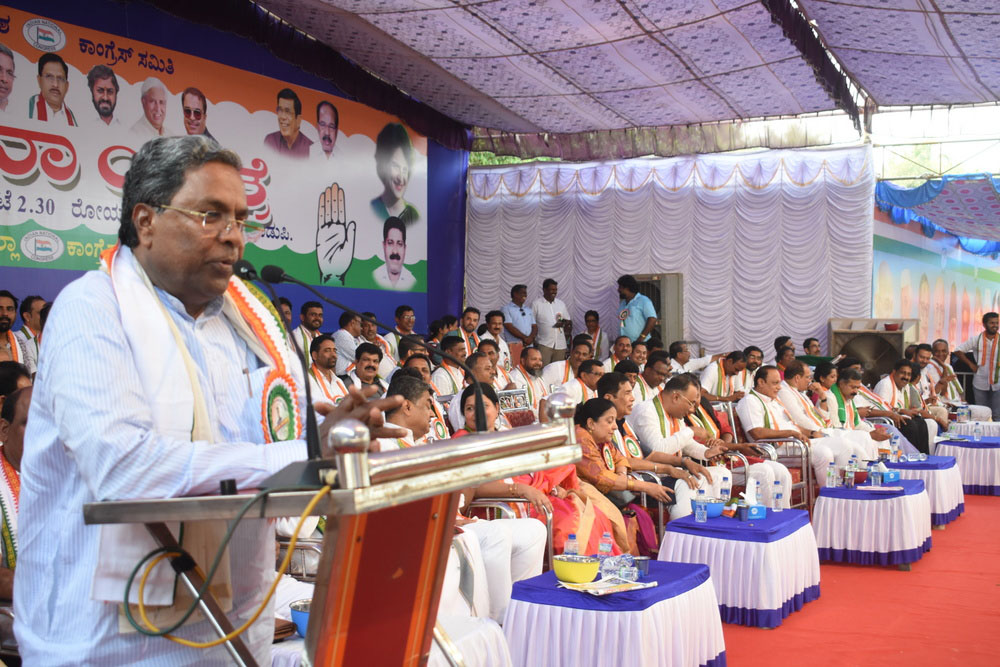 ಯುಪಿಎ ಸರಕಾರದ ಅವಧಿಯಲ್ಲಿ ಪ್ರಧಾನಿ ಡಾ. ಮನಮೋಹನ್ ಸಿಂಗ್ ಅವರು ದೇಶದ ರೈತರ 72,000 ಕೋಟಿ ರೂ.ಗಳ ಸಾಲಮನ್ನಾ ಮಾಡಿದ್ದರು. ನಾನೂ ರಾಜ್ಯದಲ್ಲಿ 22,250 ರೈತರ 8165 ಕೋಟಿ ರೂ.ಗಳನ್ನು ಮನ್ನಾ ಮಾಡಿದ್ದೇನೆ. ನರೇಂದ್ರ ಮೋದಿ ತನ್ನ ಐದು ವರ್ಷಗಳ ಅವಧಿಯಲ್ಲಿ ಒಬ್ಬನೇ ಒಬ್ಬನ ಒಂದು ರೂ. ಸಾಲವನ್ನು ಮನ್ನಾ ಮಾಡಿಲ್ಲ. ಮೋದಿ ಅವರು ‘ಅಚ್ಛೇ ದಿನ್’ ಘೋಷಣೆ ಲಾಭವಾಗಿರುವುದು ಅದಾನಿ, ಅಂಬಾನಿ, ನೀರವ್ ಮೋದಿ, ಚಾಸ್ಕಿ, ಮಲ್ಯರಿಗೆ ಹೊರತು ದೇಶದ ರೈತರಿಗಲ್ಲ, ದಲಿತರಿಗಲ್ಲ ಹಾಗೂ ಬಡವರಿಗಲ್ಲ ಎಂದು ಸಿದ್ದರಾಮಯ್ಯ ಲೇವಡಿ ಮಾಡಿದರು.