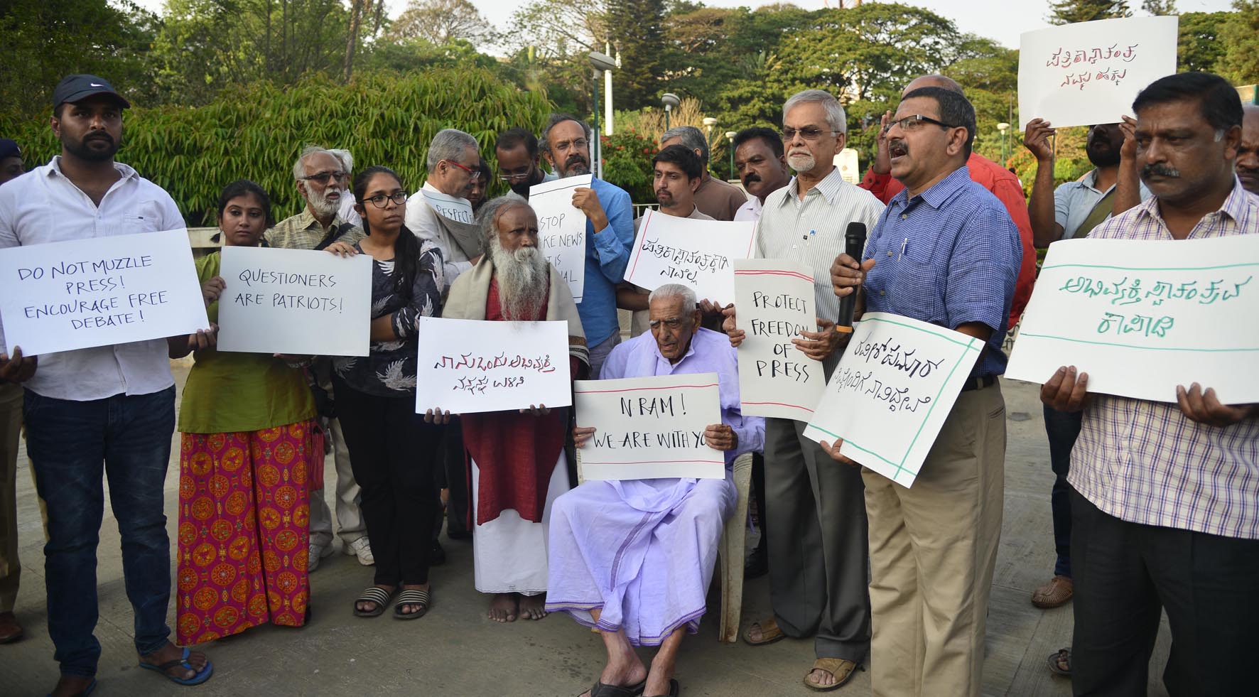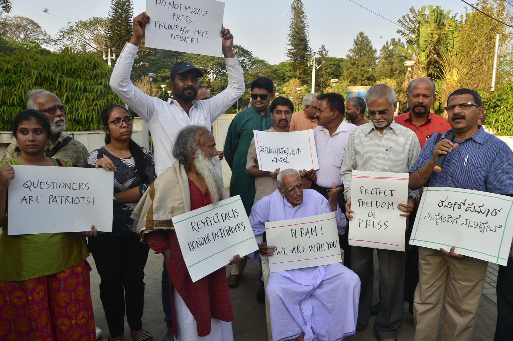 ಹಿರಿಯ ಸ್ವಾತಂತ್ರ್ಯ ಹೋರಾಟಗಾರ ಎಚ್.ಎಸ್.ದೊರೆಸ್ವಾಮಿ ಮಾತನಾಡಿ, ಐದು ವರ್ಷದ ಅವಧಿಯಲ್ಲಿ ಕೇಂದ್ರ ಸರಕಾರದ ಆಡಳಿತ ನೀತಿಯನ್ನು ಪ್ರಶ್ನಿಸುವ ಸಂಘ, ಸಂಸ್ಥೆ ಹಾಗೂ ಸಾಮಾಜಿಕ ಕಾರ್ಯಕರ್ತರನ್ನು ದೇಶದ್ರೋಹಿಗಳೆಂದು ಬಿಂಬಿಸಲಾಯಿತು. ರಫೇಲ್ ವ್ಯವಹಾರದಲ್ಲಿ ಸಾವಿರಾರು ಕೋಟಿ ರೂ. ಅವ್ಯವಹಾರ ನಡೆದಿದೆ. ಇದನ್ನು ತನಿಖಾ ವರದಿ ಮೂಲಕ ಬಯಲುಗೆಳೆದ ಪತ್ರಿಕೆಗಳ ಸ್ವಾತಂತ್ರ್ಯವನ್ನು ಹತ್ತಿಕ್ಕುವ ಕೆಲಸಕ್ಕೆ ಕೇಂದ್ರ ಸರಕಾರ ಮುಂದಾಗಿರುವುದು ದುರಂತ ಎಂದು ಬೇಸರ ವ್ಯಕ್ತಪಡಿಸಿದರು.