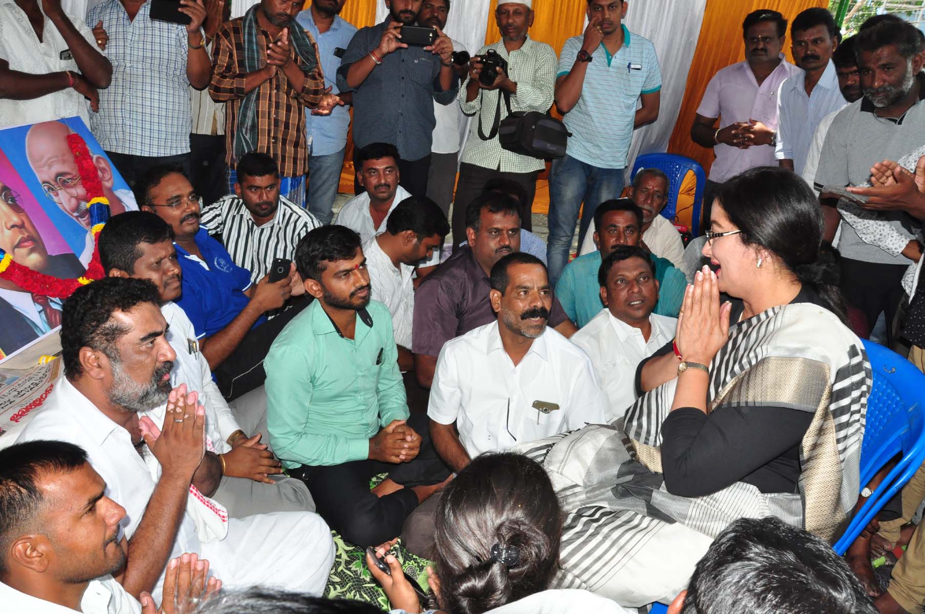ಮಧ್ಯಾಹ್ನ ಸ್ಥಳಕ್ಕೆ ಭೇಟಿ ನೀಡಿದ ನಟಿ ಸುಮಲತಾ ಸುಮಾರು 25 ನಿಮಿಷಗಳ ಕಾಲ ಧರಣಿಯಲ್ಲಿ ಭಾಗವಹಿಸಿ ಮಾತುಕತೆ ನಡೆಸಿ, ಬೆಂಬಲ ಸೂಚಿಸಿದರು.