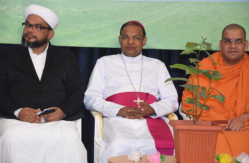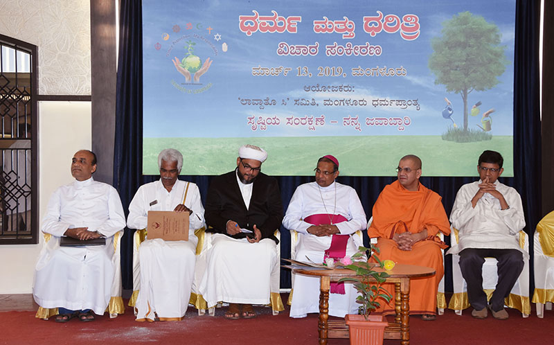 ಮಂಗಳೂರು ಧರ್ಮಪ್ರಾಂತದ ‘ಲಾವ್ದಾತೊ ಸಿ’ ಸಮಿತಿಯಿಂದ ನಗರದ ಮಿಲಾಗ್ರಿಸ್ ಸೆನೆಲ್ ಸಭಾಂಗಣದಲ್ಲಿ ಬುಧವಾರ ಹಮ್ಮಿಕೊಳ್ಳಲಾದ ‘ಧರ್ಮ ಮತ್ತು ಧರಿತ್ರಿ’ ವಿಚಾರ ಸಂಕಿರಣವನ್ನು ಮಂಗಳೂರು ಧರ್ಮಪ್ರಾಂತದ ಬಿಷಪ್ ಅತಿ ವಂದನೀಯ ಡಾ.ಪೀಟರ್ ಪಾವ್ಲ್ ಸಲ್ಡಾನ್ಹ, ವೌಲಾನ ಅಬ್ದುಲ್ ಅಝೀಝ್ ದಾರಿಮಿ ಚೊಕ್ಕಬೆಟ್ಟು, ರಾಮಕೃಷ್ಣ ಮಿಶನ್ನ ಏಕಗಮ್ಯಾನಂದ ಶ್ರೀ ಉದ್ಘಾಟಿಸಿದರು.
