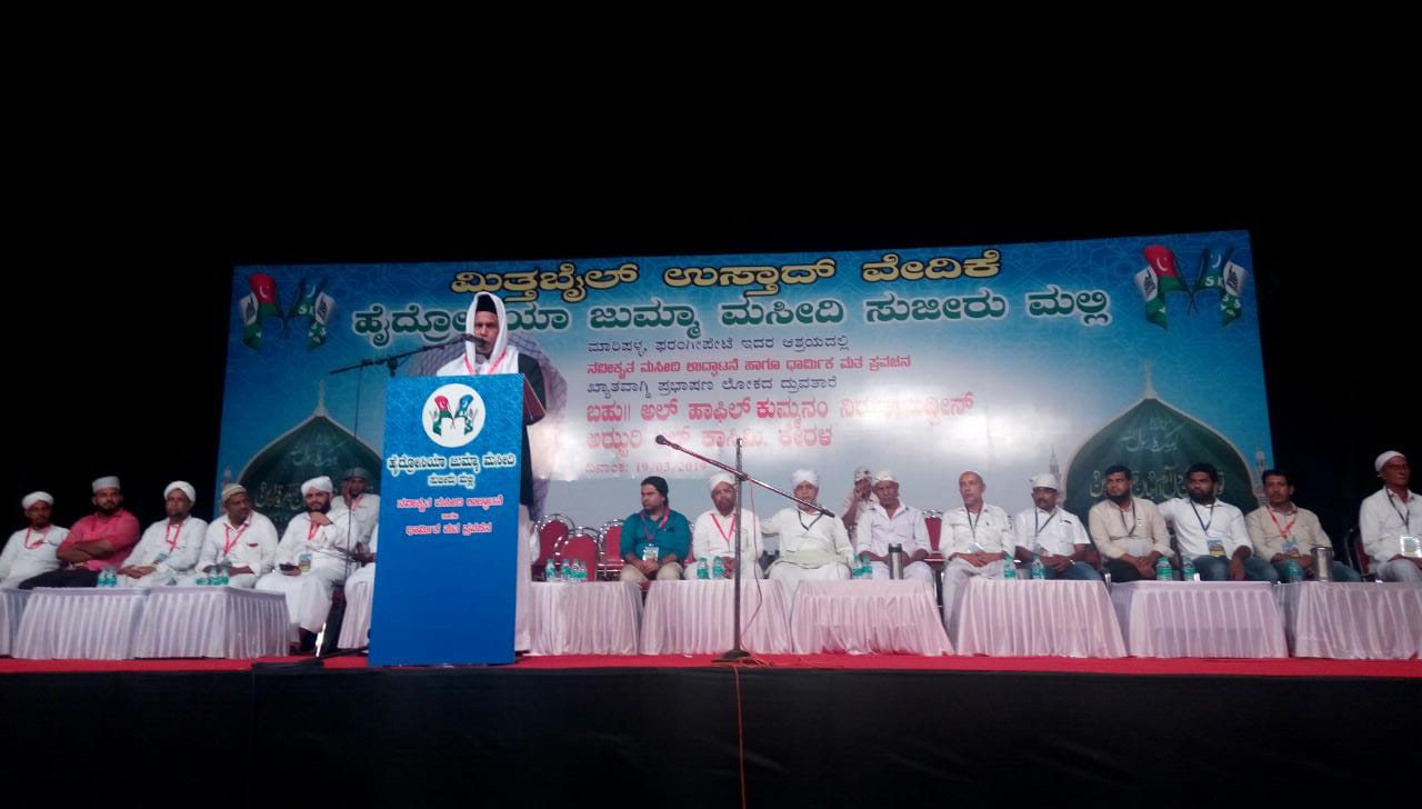 ಹೈದ್ರೋಸಿಯಾ ಜುಮಾ ಮಸೀದಿ ಸುಜೀರ್ ಮಳ್ಳಿ ಗೌರವಾಧ್ಯಕ್ಷ ಹಾಜಿ ಅಬ್ದುಲ್ ರಝಾಕ್ ಮಲೇಶ್ಯ ಉದ್ಘಾಟನೆ ಮತ್ತು ಕಾರ್ಯಕ್ರಮದ ಅಧ್ಯಕ್ಷತೆ ವಹಿಸಿದ್ದರು. ಪೊಳ್ಯ ಜುಮ್ಮಾ ಮಸೀದಿ ಮುದರಿಸ್ ಸಯ್ಯದ್ ಯಹ್ಯಾ ತಂಙಳ್ ದುವಾಗೈದರು, ಮಾರಿಪ್ಪಳ್ಳ ಮಸೀದಿ ಮುದರಿಸ್ ಖಲೀಲುರ್ರಹ್ಮಾನ್ ದಾರಿಮಿ ಪ್ರಾಸ್ತಾವಿಕ ಮಾತುಗಳನ್ನಾಡಿದರು.