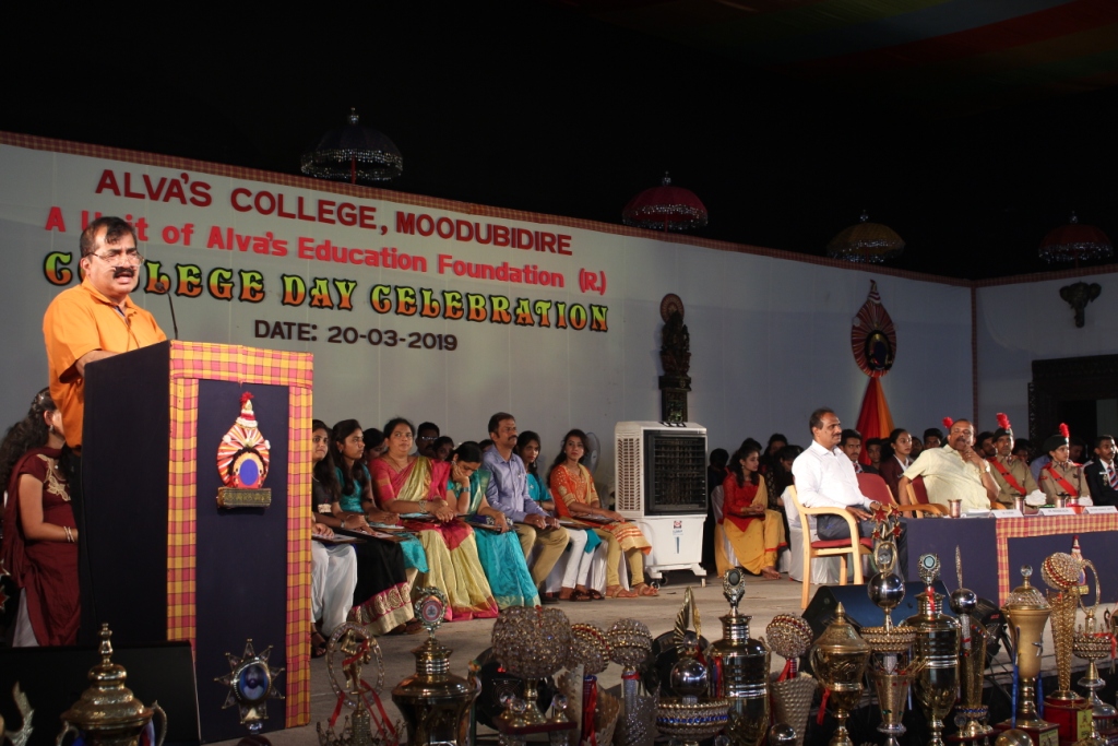 ಸಮಾರಂಭದ ಅಧ್ಯಕ್ಷತೆಯನ್ನು ವಹಿಸಿದ ಅಳ್ವಾಸ್ ಶಿಕ್ಷಣ ಪ್ರತಿಷ್ಠಾನದ ಅಧ್ಯಕ್ಷ ಡಾ. ಎಮ್ ಮೋಹನ್ ಅಳ್ವ ಮಾತನಾಡಿ, ಪ್ರತಿಯೊಬ್ಬನ ಜೀವನದಲ್ಲಿ ಪದವಿಗಳು ಮುಖ್ಯ. ಪದವಿಗಳು ದೊರೆತಾಗಲೇ ಸಮಾಜದಲ್ಲಿ ಉತ್ತಮ ನಾಗರೀಕರಾಗಲು ಹಾಗೂ ಪರಿಪೂರ್ಣ ವ್ಯಕ್ತಿಯಾಗಲು ಸಾಧ್ಯ. ಸಾಮಾನ್ಯ ಪದವಿಗಳನ್ನು ಗಂಭೀರವಾಗಿ ಪರಿಗಣಿಸದಿದ್ದರೆ ಸಾಧನೆ ಮಾಡಲು ಅಸಾಧ್ಯ. ಉದ್ಯೋಗಗಳನ್ನು ಪಡೆಯಲು ಪಠ್ಯ ಶಿಕ್ಷಣದ ಜೊತೆಗೆ ಕೌಶಲ್ಯದ ಅಗತ್ಯವಿದೆ. ಯಾವುದೇ ಉದ್ಯೋಗದ ಕುರಿತು ಸ್ಪಷ್ಟ ಪರಿಕಲ್ಪನೆ ಹೊಂದಿರಬೇಕು. ಯಾವುದೇ ಸಾಧನೆ ಮಾಡಲು ಹೃದಯವಂತಿಕೆಯ ಅಗತ್ಯವಿದೆ. ನಮ್ಮಲಿರುವ ಸಾಮಥ್ರ್ಯವನ್ನು ಸರಿಯಾದ ಪಥದಲ್ಲಿ ಕೊಂಡೊಯ್ಯುವುದು ಅಗತ್ಯ. ಕ್ರೀಡಾ ಮನೋಭಾವ ಇದ್ದರೆ ಮಾತ್ರ ಜೀವನದಲ್ಲಿ ಸಫಲತೆಯನ್ನು ಕಾಣಲು ಸಾಧ್ಯ. ನಾವು ಮಾಡುವ ಸಾಧನೆಗಳು ಬದುಕನ್ನು ಪಲಪ್ರದವಾಗಿರಿಸುತ್ತದೆ ಎಂದು ಹೇಳಿದರು.