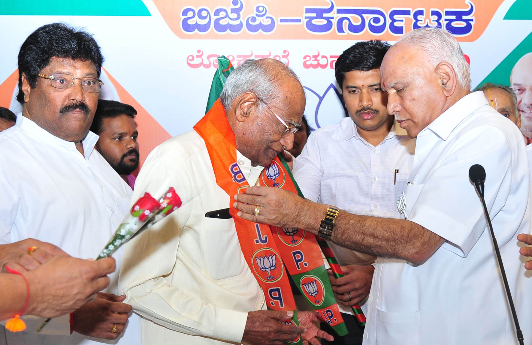 ನಗರದಲ್ಲಿ ಖಾಸಗಿ ಹೊಟೇಲ್ನಲ್ಲಿ ಆಯೋಜಿಸಿದ್ದ ಬಿಜೆಪಿ ಮಾಧ್ಯಮ ಕೇಂದ್ರ ಉದ್ಘಾಟನೆ ವೇಳೆ ಬಿ.ಎಸ್.ಯಡಿಯೂರಪ್ಪ ಬಿಜೆಪಿ ಬಾವುಟವನ್ನು ಮಾಲಕರೆಡ್ಡಿಗೆ ನೀಡುವ ಮೂಲಕ ಪಕ್ಷಕ್ಕೆ ಬರಮಾಡಿಕೊಂಡರು.