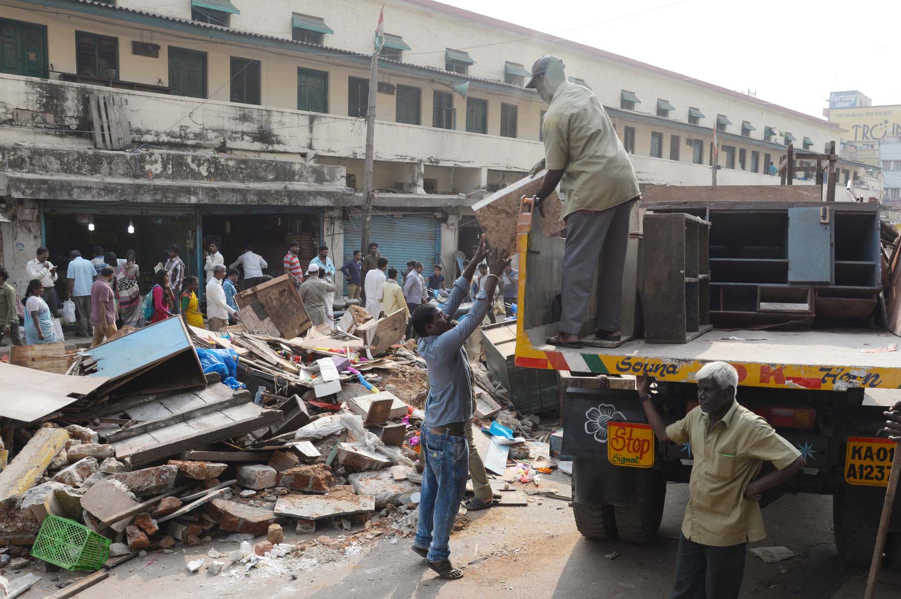 ಜನಸಂದಣಿ ಪ್ರದೇಶವಾಗಿರುವ ಕೆ.ಆರ್. ಮಾರುಕಟ್ಟೆಯಲ್ಲಿ ಪಾದಚಾರಿ ರಸ್ತೆ ಸೇರಿ ಸರಕಾರಿ ಜಾಗ ಒತ್ತುವರಿ ಮಾಡಿಕೊಂಡು ಅನಧಿಕೃತವಾಗಿ ನಿರ್ಮಿಸಿಕೊಂಡಿದ್ದ ಮಳಿಗೆ, ಅಂಗಡಿಗಳನ್ನು ಬಿಗಿ ಪೊಲೀಸ್ ಬಂದೋಬಸ್ತ್ನಲ್ಲಿ ತೆರವು ಮಾಡಲಾಯಿತು.