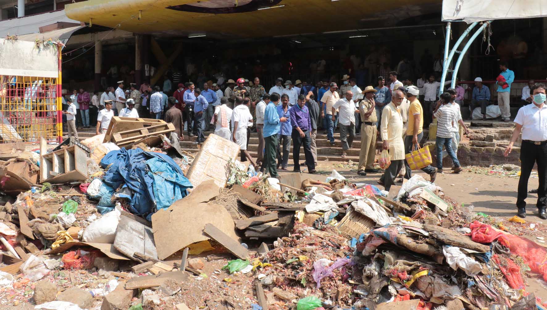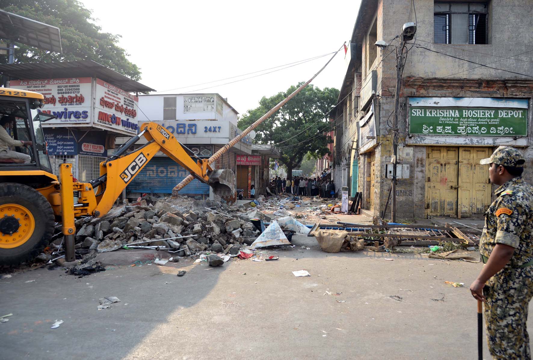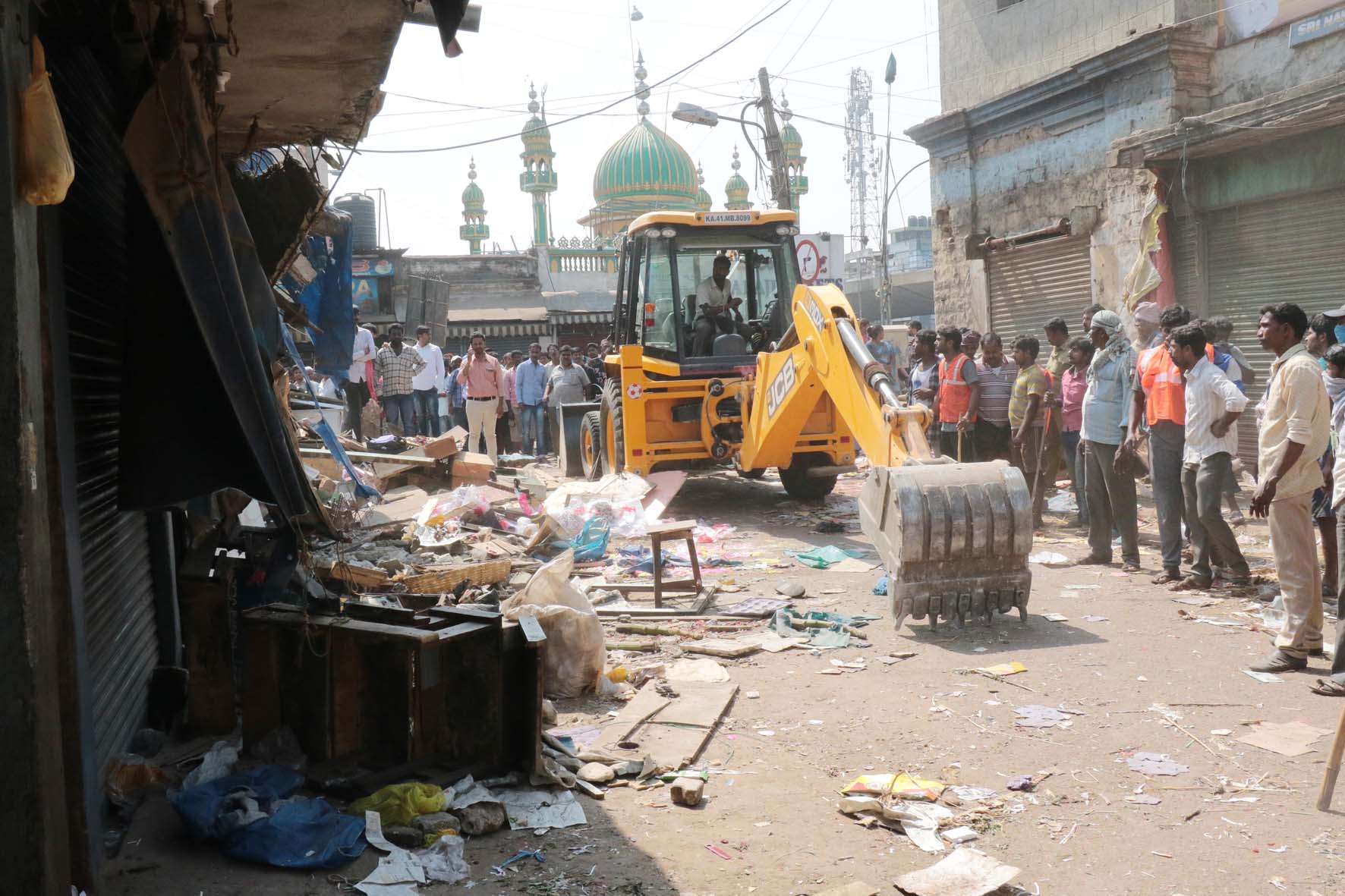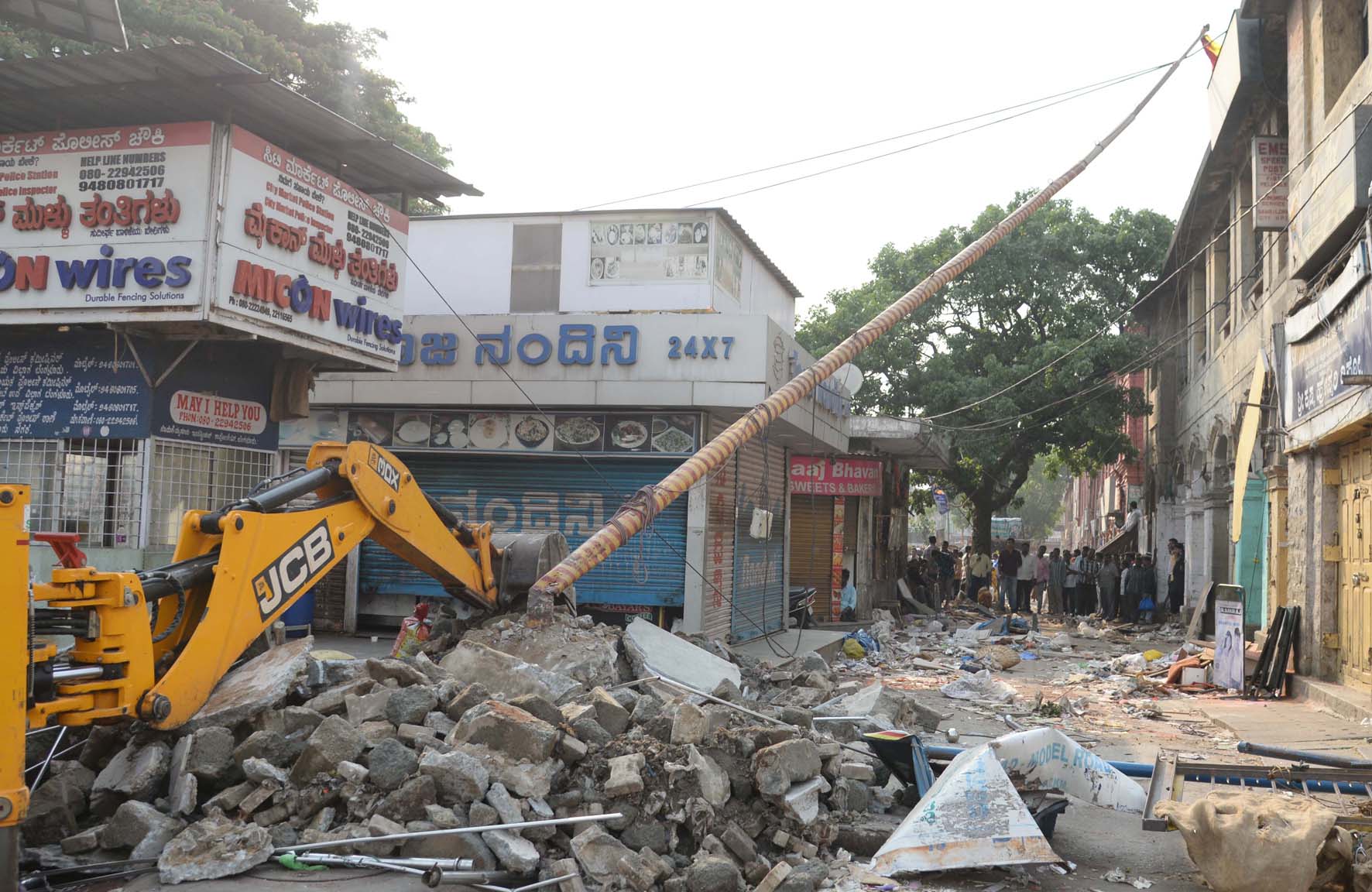 ಬೆಂಗಳೂರು, ಮಾ.29: ರಾಜಧಾನಿ ಬೆಂಗಳೂರಿನ ಪ್ರಸಿದ್ದ ಕೃಷ್ಣರಾಜ(ಕೆಆರ್) ಮಾರುಕಟ್ಟೆಯಲ್ಲಿ ಪಾದಚಾರಿ ರಸ್ತೆ, ವಾಹನ ನಿಲ್ದಾಣ ಸ್ಥಳದಲ್ಲಿ ಅನಧಿಕೃತವಾಗಿ ನಿರ್ಮಿಸಿದ್ದ ಬರೋಬ್ಬರಿ 2021 ಮಳಿಗೆಗಳನ್ನು ಶುಕ್ರವಾರ ನೆಲಸಮಗೊಳಿಸಿದರು.