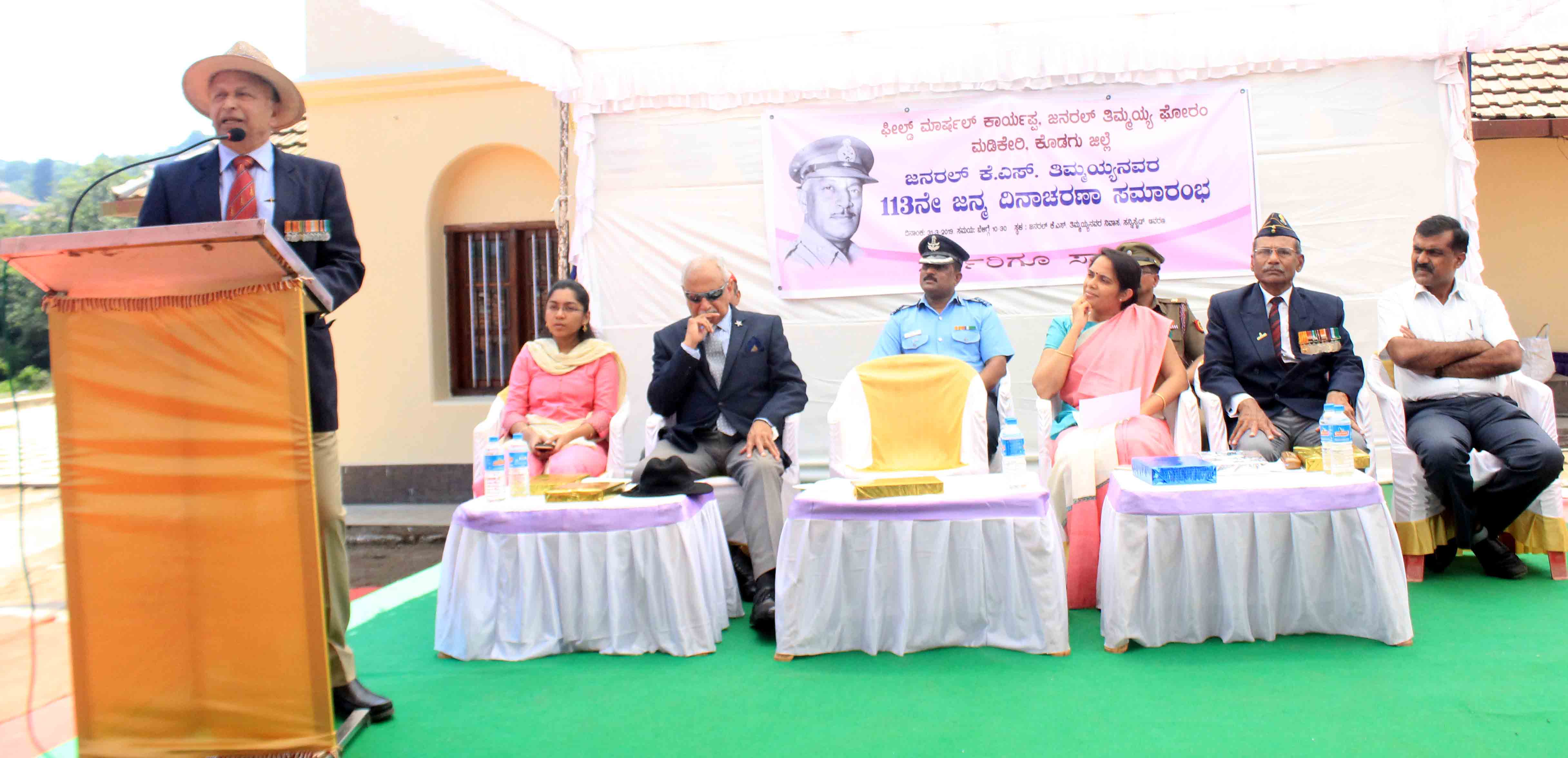 ನಗರದ ಸನ್ನಿಸೈಡ್ನಲ್ಲಿ ಕೊಡಗು ಜಿಲ್ಲಾಡಳಿತ, ಕನ್ನಡ ಮತ್ತು ಸಂಸ್ಕೃತಿ ಇಲಾಖೆ, ಕರ್ನಾಟಕ ಕೊಡವ ಸಾಹಿತ್ಯ ಅಕಾಡಮಿ, ಫೀ.ಮಾ.ಕಾರ್ಯಪ್ಪಮತ್ತು ಜ.ತಿಮ್ಮಯ್ಯ ಫೋರಂ ಸಹಯೋಗದಲ್ಲಿ ನಡೆದ ಪದ್ಮಭೂಷಣ ಜನರಲ್ ಕೆ.ಎಸ್.ತಿಮ್ಮಯ್ಯ ಡಿಎಸ್ಒ ಅವರ 113ನೇ ಜನ್ಮ ದಿನಾಚರಣೆ ಸಮಾರಂಭದಲ್ಲಿ ಮುಖ್ಯ ಅತಿಥಿಗಳಾಗಿ ಪಾಲ್ಗೊಂಡು ಅವರು ಮಾತನಾಡಿದರು.