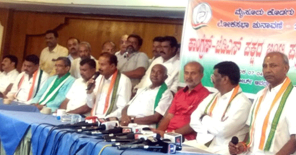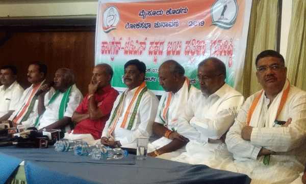 ಜಂಟಿ ಪತ್ರಿಕಾಗೋಷ್ಠಿಯಲ್ಲಿ ಮೈಸೂರು-ಕೊಡಗು, ಚಾಮರಾಜನಗರ ಲೋಕಸಭಾ ಕ್ಷೇತ್ರಗಳ ಕಾಂಗ್ರೆಸ್ ಅಭ್ಯರ್ಥಿಗಳಾದ ಸಿ.ಎಚ್.ವಿಜಯಶಂಕರ್, ಆರ್.ಧ್ರುವನಾರಾಯಣ್, ಸಚಿವರುಗಳಾದ ಜಿ.ಟಿ.ದೇವೇಗೌಡ, ಸಾ.ರಾ.ಮಹೇಶ್, ಶಾಸಕರಾದ ತನ್ವೀರ್ ಸೇಠ್, ಡಾ.ಯತೀಂದ್ರ ಸಿದ್ದರಾಮಯ್ಯ, ಅಶ್ವಿನ್ ಕುಮಾರ್, ಅನಿಲ್ ಚಿಕ್ಕಮಾದು, ಕೆ.ಮಹದೇವ್, ವಿಧಾನಪರಿಷತ್ ಸದಸ್ಯ ಆರ್.ಧವರ್ಸೇನಾ, ಜೆಡಿಎಸ್ ಜಿಲ್ಲಾಧ್ಯಕ್ಷ ಎನ್.ನರಸಿಂಹಸ್ವಾಮಿ, ನಗರಾಧ್ಯಕ್ಷ ಕೆ.ಟಿ.ಚಲುವೇಗೌಡ, ಕಾಂಗ್ರೆಸ್ ಜಿಲ್ಲಾಧ್ಯಕ್ಷ ಡಾ.ಬಿ.ಜೆ.ವಿಜಯಕುಮಾರ್, ನಗರಾಧ್ಯಕ್ಷ ಆರ್.ಮೂರ್ತಿ, ಕಾಂಗ್ರೆಸ್ ಮಹಿಳಾ ಘಟಕದ ರಾಜ್ಯಧ್ಯಕ್ಷೆ ಪುಷ್ಪಾ ಅಮರ್ನಾಥ್, ಮಾಜಿ ಶಾಸಕರುಗಳಾದ ಎಚ್.ಪಿ.ಮಂಜುನಾಥ್, ಎಂ.ಕೆ.ಸೋಮಶೇಖರ್ ಸೇರಿದಂತೆ ಕಾಂಗ್ರೆಸ್-ಜೆಡಿಎಸ್ ಪಕ್ಷಗಳ ಪ್ರಮುಖ ನಾಯಕರು ಹಾಜರಿದ್ದರು.