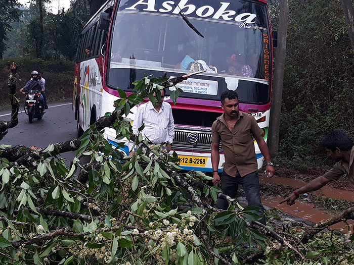 ಕೊಡಗಿನಲ್ಲಿ ಗುಡುಗು, ಸಿಡಿಲಿನ ಅಬ್ಬರ: ಮರದ ಕೊಂಬೆ ಬಿದ್ದು ವಾಹನ ಸಂಚಾರಕ್ಕೆ ಅಡಚಣೆ