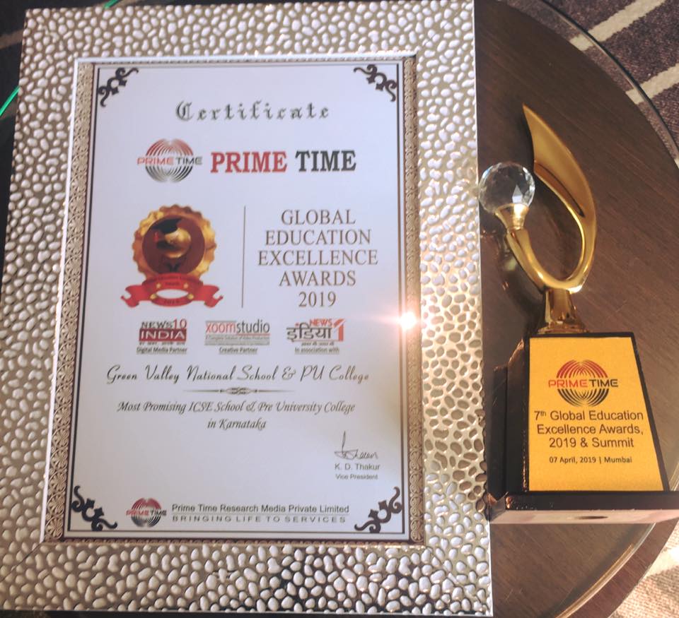 ಮಂಗಳೂರು, ಎ.8: ಪ್ರೈಮ್ ಟೈಮ್ ಮೀಡಿಯಾ ರವಿವಾರ ಮುಂಬೈಯಲ್ಲಿ ಆಯೋಜಿಸಿದ್ದ '7ನೇ ಜಾಗತಿಕ ಶಿಕ್ಷಣ ಉತ್ಕೃಷ್ಟತೆ ಪ್ರಶಸ್ತಿಗಳು 2019' ಕಾರ್ಯಕ್ರಮದಲ್ಲಿ ಶಿರೂರಿನ ಗ್ರೀನ್ ವ್ಯಾಲಿ ನ್ಯಾಷನಲ್ ಸ್ಕೂಲ್ ಮತ್ತು ಕಾಲೇಜಿಗೆ ಕರ್ನಾಟಕದ ಅತ್ಯಂತ ಭರವಸೆಯ 'ಐಸಿಎಸ್ಇ' ಪ್ರಶಸ್ತಿ ನೀಡಿ ಗೌರವಿಸಲಾಗಿದೆ.