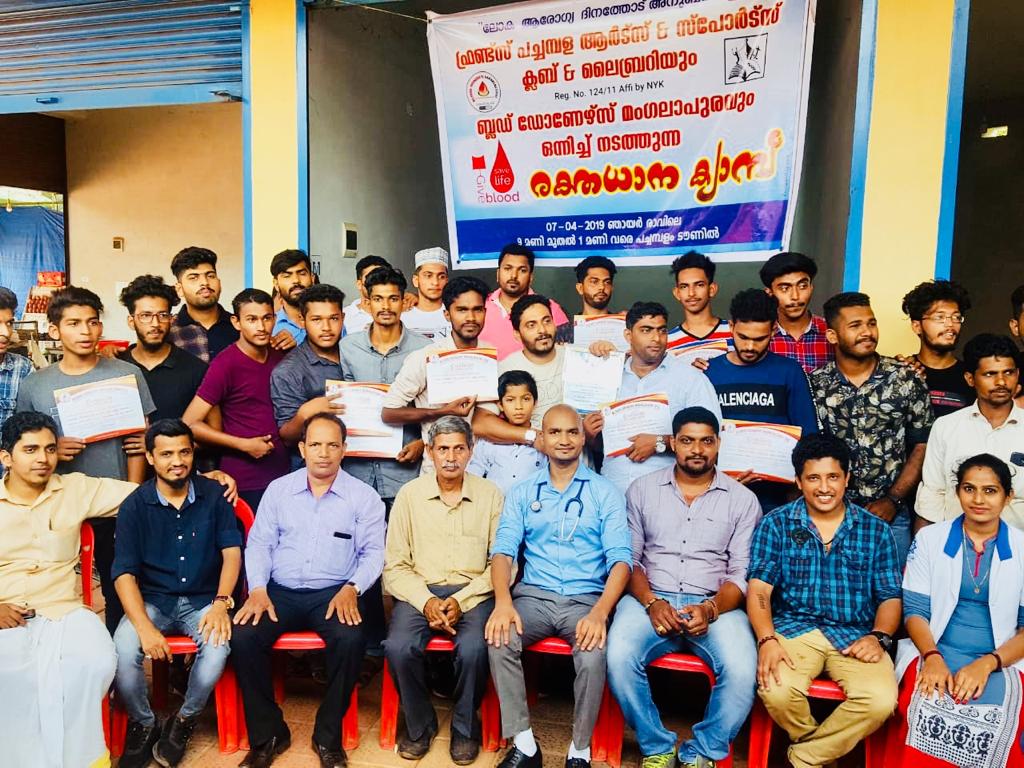 ಮಂಜೇಶ್ವರ: ಫ್ರೆಂಡ್ಸ್ ಪಚ್ಚಂಬಳ ಆರ್ಟ್ಸ್ ಆ್ಯಂಡ್ ಸ್ಪೋರ್ಟ್ಸ್ ಕ್ಲಬ್, ಲೈಬ್ರರಿ ಹಾಗೂ ಬ್ಲಡ್ ಡೋನರ್ಸ್ ಮಂಗಳೂರು ಜಂಟಿಯಾಗಿ ವಿಶ್ವ ಆರೋಗ್ಯ ದಿನಾಚರಣೆಯ ಪ್ರಯುಕ್ತ ಬೃಹತ್ ರಕ್ತದಾನಶಿಬಿರ ಪಚ್ಚಂಬಳ ಟೌನ್ ನಲ್ಲಿ ನಡೆಯಿತು.