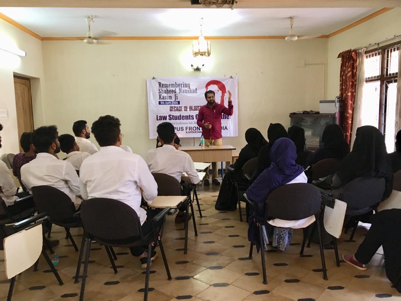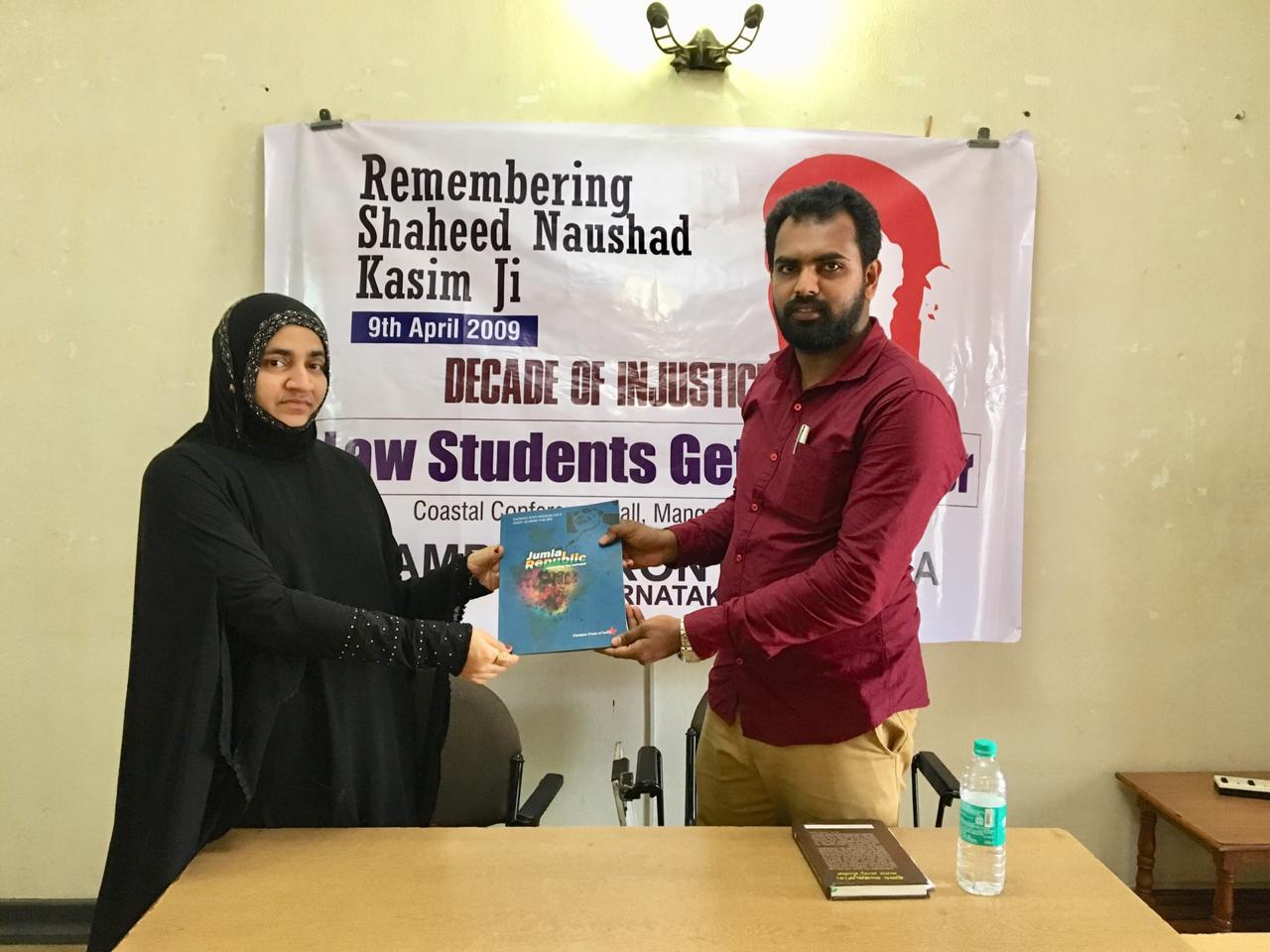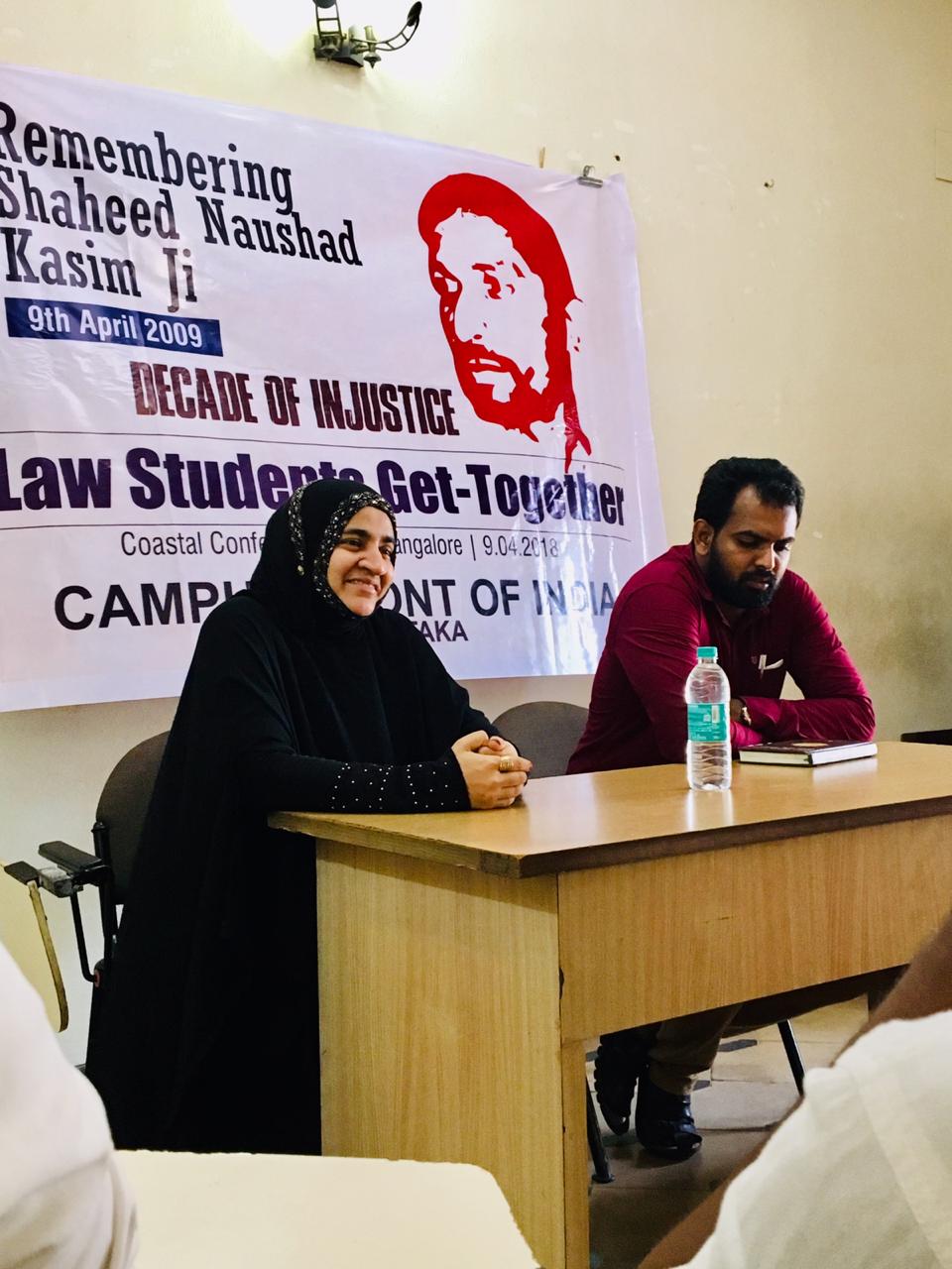 ಮುಖ್ಯಅತಿಥಿಯಾಗಿ ಆಗಮಿಸಿದ ಕಾಸಿಂ ಜಿ ಅವರ ಪತ್ನಿ ಅಡ್ವೊಕೇಟ್ ನುಸ್ರತ್ ಕಾಸಿಂ ಮಾತನಾಡಿ, ನೌಶಾದ್ ಕಾಸಿಂ ಪ್ರಕರಣದಲ್ಲಿ ಕಾನೂನು ಇಲಾಖೆಯ ವೈಫಲ್ಯ, ಜೀವನ ಶೈಲಿ ಹಾಗೂ ಹೋರಾಟ ಮನೋಭಾವ ಕುರಿತು ವಿವರಿಸಿದರು.