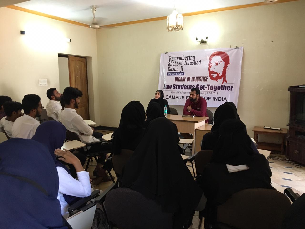 ಮಂಗಳೂರು, ಎ.9: ಕ್ಯಾಂಪಸ್ ಫ್ರಂಟ್ ಆಫ್ ಇಂಡಿಯಾ ಕರ್ನಾಟಕ ವತಿಯಿಂದ ‘ಅನ್ಯಾಯದ ದಶಕಗಳು’ ಘೋಷ ವಾಕ್ಯದಡಿ ‘ಶಹೀದ್ ನೌಶಾದ್ ಕಾಸಿಂ ಜಿ’ ಕುರಿತು ಮಂಗಳೂರಿನ ಸಹೋದಯ ಸಭಾಭವನದಲ್ಲಿ ಮಂಗಳವಾರ ಕಾನೂನು ವಿದ್ಯಾರ್ಥಿಗಳೊಂದಿಗೆ ಸಂವಾದ ಕಾರ್ಯಕ್ರಮವನ್ನು ಹಮ್ಮಿಕೊಳ್ಳಲಾಗಿತ್ತು.