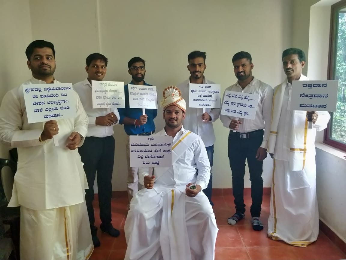ಸಿದ್ಧಕಟ್ಟೆಯಲ್ಲಿರುವ ಹರ್ಷಲಿ ಸಭಾಭವನದಲ್ಲಿ ಇಂದು ನಡೆದ ಸಂತೋಷ್ ಬಂಗೇರ ಮತ್ತು ಪ್ರಮೀಳಾ ಮದುವೆ ಸಮಾರಂಭದಲ್ಲಿ ವಧು-ವರರು "ಕಡ್ಡಾಯ ಮತದಾನ ಮಾಡಿ" ಎಂಬ ಬಿತ್ತಿಪತ್ರವನ್ನು ಹಿಡಿದು ಜಾಗೃತಿ ಮೂಡಿಸಿದ್ದಾರೆ. "ನೀವು ನಮ್ಮನ್ನು ಹರಸಿ, ಹಾರೈಸುವ ರೀತಿಯಲ್ಲಿ ನಾಳೆ ನಡೆಯುವ ಚುನಾವಣೆಯಲ್ಲಿ ದೇಶಕ್ಕಾಗಿ ಮತದಾನ ಮಾಡಬೇಕು" ಎಂಬ ಬಿತ್ತಿಪತ್ರವು ಸಮಾರಂಭದಲ್ಲಿ ಭಾಗವಹಿಸಿದ್ದ ಜನರ ಗಮನ ಸೆಳೆದಿದೆ.