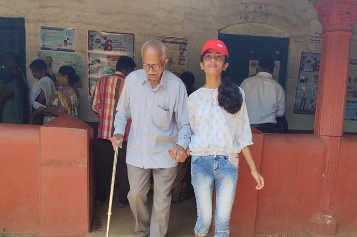 ಮತದಾನದ ಹಕ್ಕನ್ನು ಚಲಾಯಿಸುವುದಕ್ಕಾಗಿ ತಮ್ಮ ಮೊಮ್ಮಗಳೊಂದಿಗೆ ಬಂದ ನಿವೃತ್ತ ಶಿಕ್ಷಕ 89 ವರ್ಷದ ಪಟ್ಟಡ ಮಾಚಯ್ಯ ಅವರು ಮಡಿಕೇರಿ ಶಾಲೆಯ ಮತಗಟ್ಟೆಯಲ್ಲಿ ಮತದಾನ ಮಾಡಿದ ಯುವ ಸಮೂಹದ ಗಮನ ಸೆಳೆದರು.
