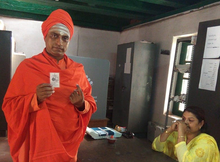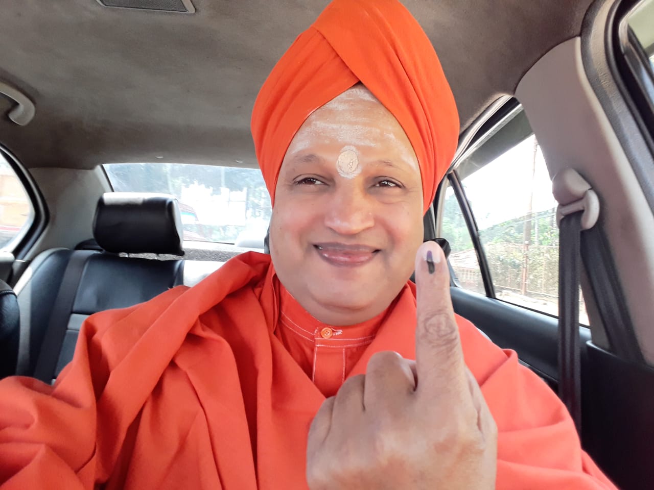 ವಿರಾಜಪೇಟೆ ತಾಲೂಕಿನ ಅರಮೇರಿ ಮಠದ ಶ್ರೀಶಾಂತಮಲ್ಲಿಕಾರ್ಜುನ ಸ್ವಾಮಿಗಳು ಅರಮೇರಿ ಮತಗಟ್ಟೆಯಲ್ಲಿ ಮತಚಲಾಯಿಸಿದರು.
