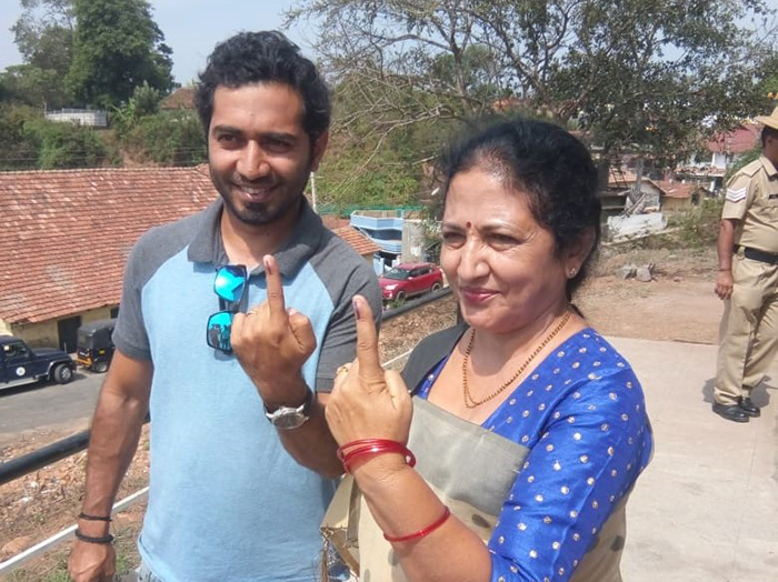 ಕಾಂಗ್ರೆಸ್ ಮುಖಂಡರು ಹಾಗೂ ವಿಧಾನ ಪರಿಷತ್ ಸದಸ್ಯರಾದ ಶಾಂತೆಯಂಡ ವೀಣಾಅಚ್ಚಯ್ಯ ಅವರು ತಮ್ಮ ಪುತ್ರ ವಿಕಾಸ್ ಅಚ್ಚಯ್ಯ ಅವರೊಂದಿಗೆ ಮಡಿಕೇರಿ ನಗರಸಭಾ ವ್ಯಾಪ್ತಿಯ ಎವಿ ಶಾಲೆ ಮತಗಟ್ಟೆಯಲ್ಲಿ ಮತಚಲಾಯಿಸಿದರು. ಈ ಸಂದರ್ಭ ಮಾತನಾಡಿದ ವೀಣಾಅಚ್ಚಯ್ಯ ಕಾಂಗ್ರೆಸ್ ಮತ್ತು ಜೆಡಿಎಸ್ ಮೈತ್ರಿ ಅಭ್ಯರ್ಥಿ ಸಿ.ಹೆಚ್.ವಿಜಯಶಂಕರ್ ಅವರಿಗೆ ಕೊಡಗು ಜಿಲ್ಲೆಯಿಂದ ಅತ್ಯಧಿಕ ಮತ ಲಭಿಸಲಿದ್ದು, ಗೆಲುವು ಖಚಿತವಾಗಿದೆ ಎಂದರು. ಕಾಂಗ್ರೆಸ್ ಪಕ್ಷದ ವಿವಿಧ ಘಟಕಗಳ ಪದಾಧಿಕಾರಿಗಳು ಹಾಜರಿದ್ದರು.